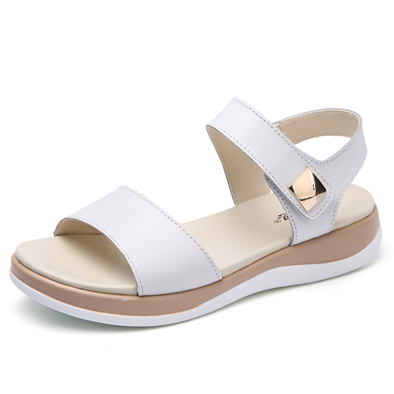 Летние модные универсальные нескользящие босоножки на липучке для школьников и студентов, 2020, из натуральной кожи, простой и элегантный дизайн