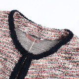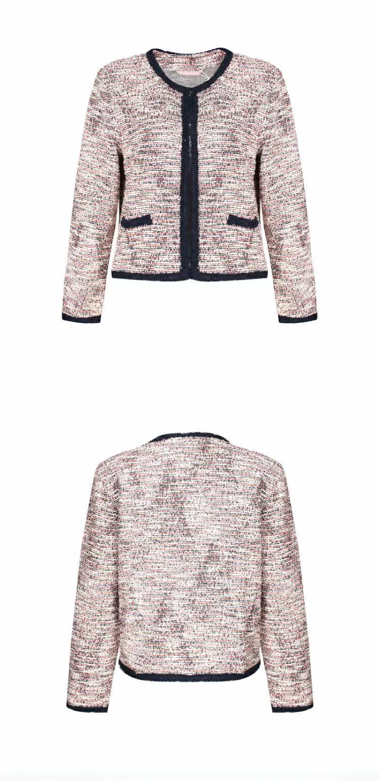 Ретро весенняя тонкая куртка с круглым воротником, модный короткий кардиган, французский стиль, в стиле Шанель