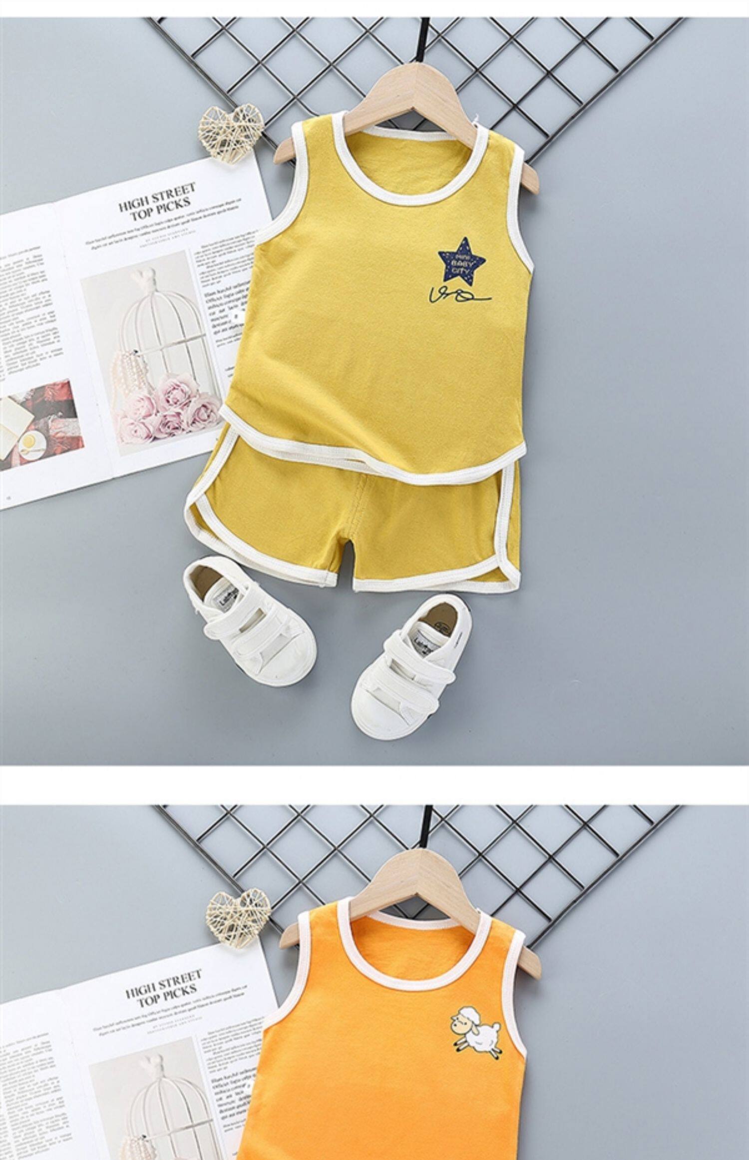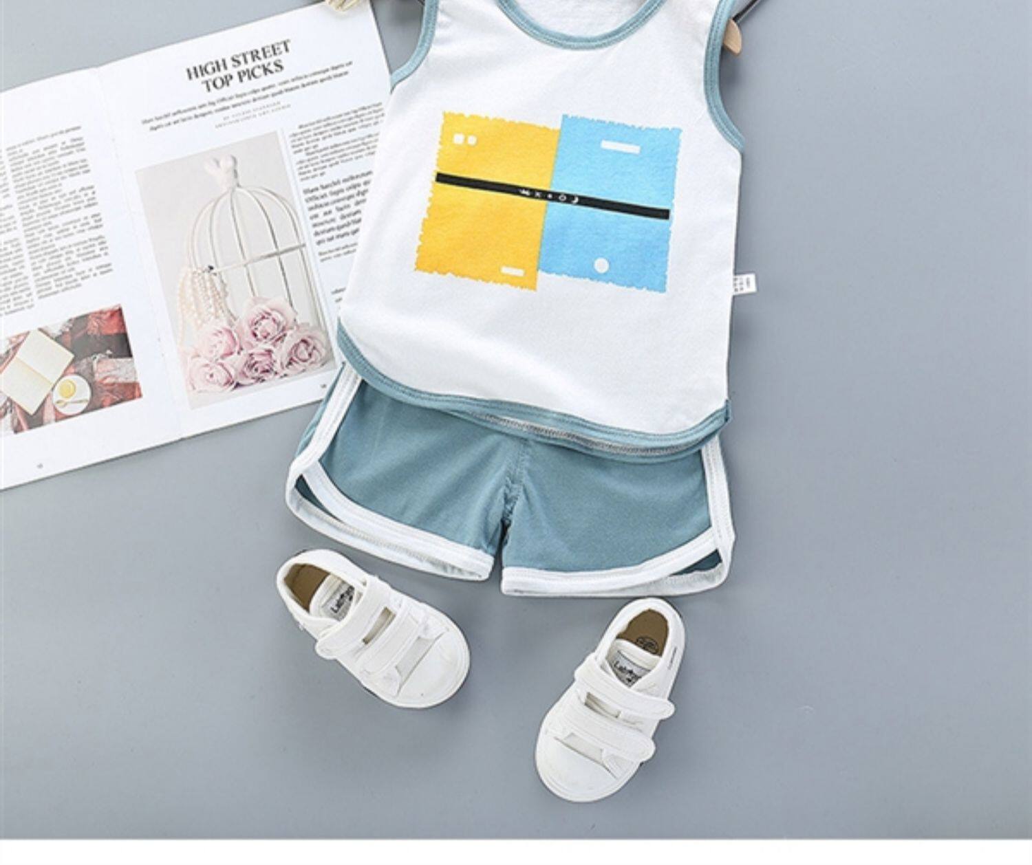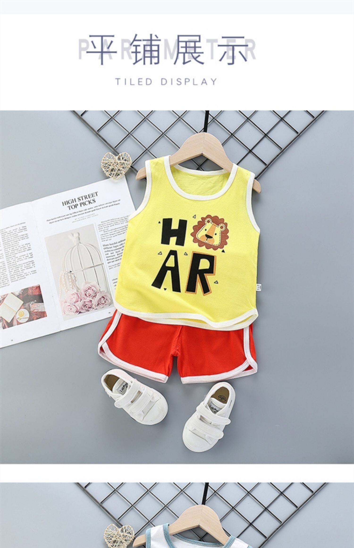 Летний детский жилет, хлопковый комплект для мальчиков без рукавов, в корейском стиле