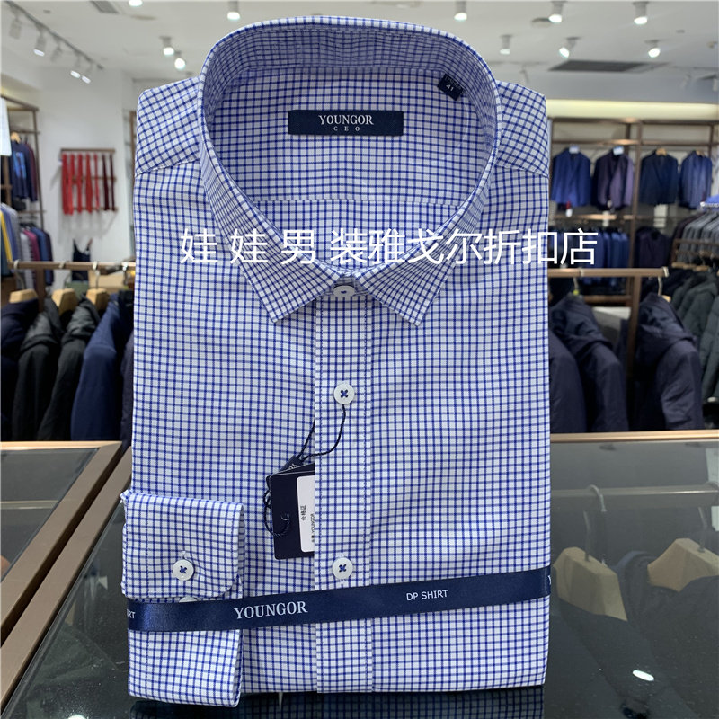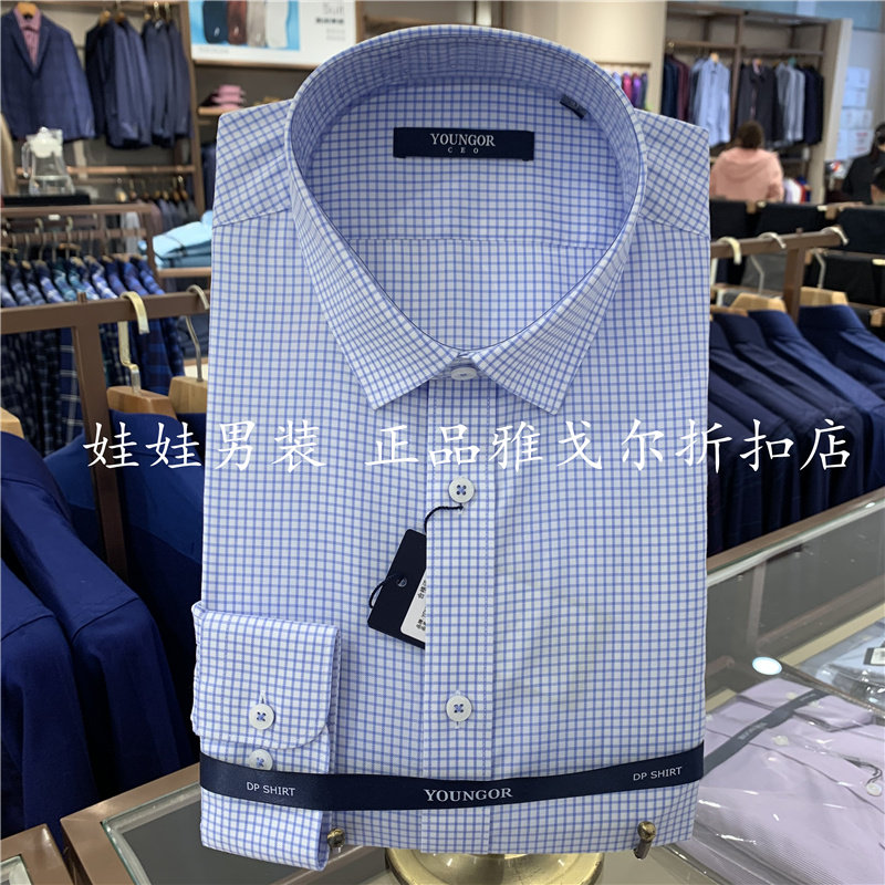 Counter 780 Youngor DP без железа, светло-синяя клетчатая мужская повседневная рубашка с длинными рукавами 119868F, двухцветная стандартная версия