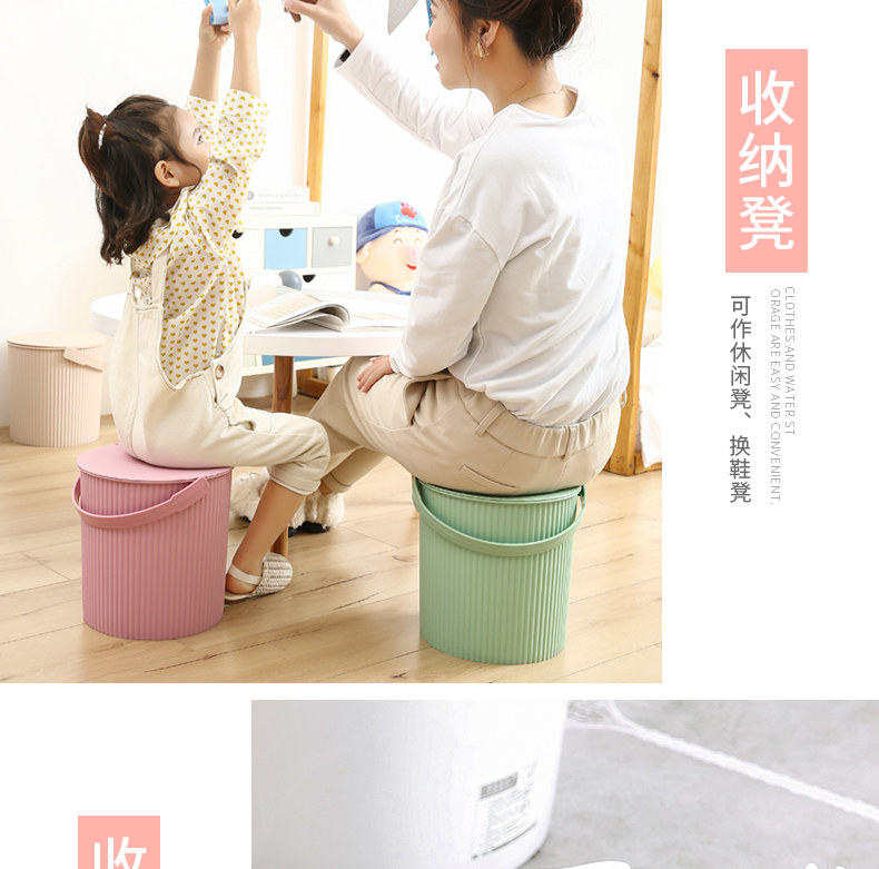 Портативное ведро, пластиковая система хранения с сидением, маленькая ванна для стирки, увеличенная толщина