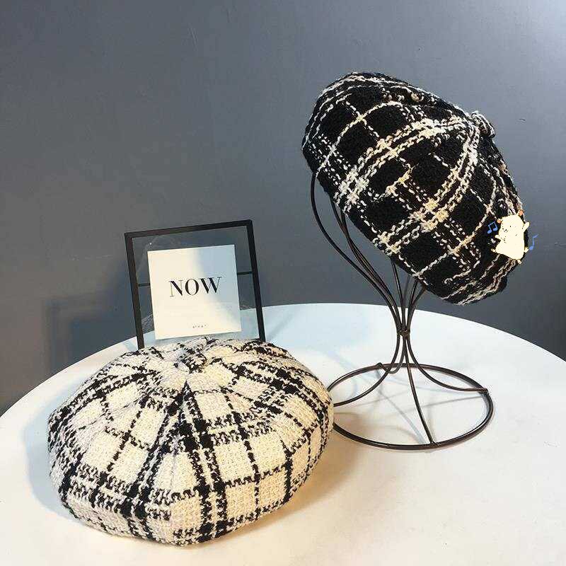 К шапкам подходят короткие ленты для волос, зимняя женская корейская версия модного берета интернет-знаменитости, британская ретро-шляпа-тыква и восьмиугольная шляпа.