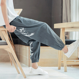 Мужские летние штаны, китайский стиль, большой размер, свободный крой, из хлопка и льна