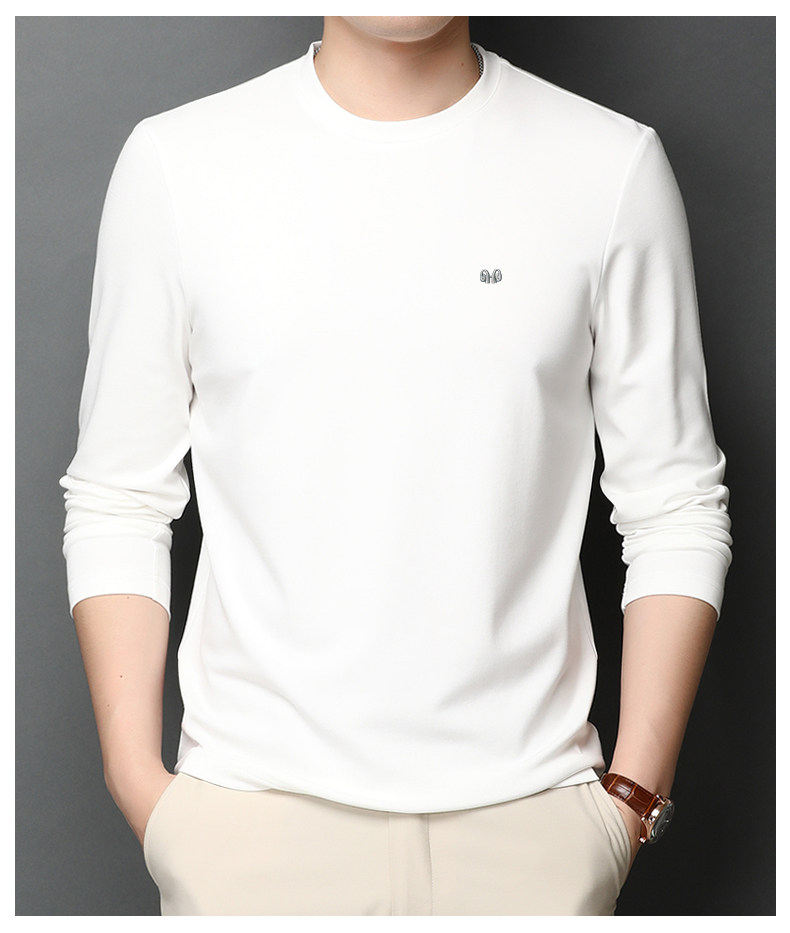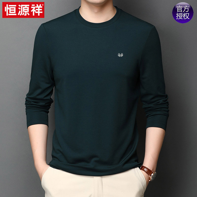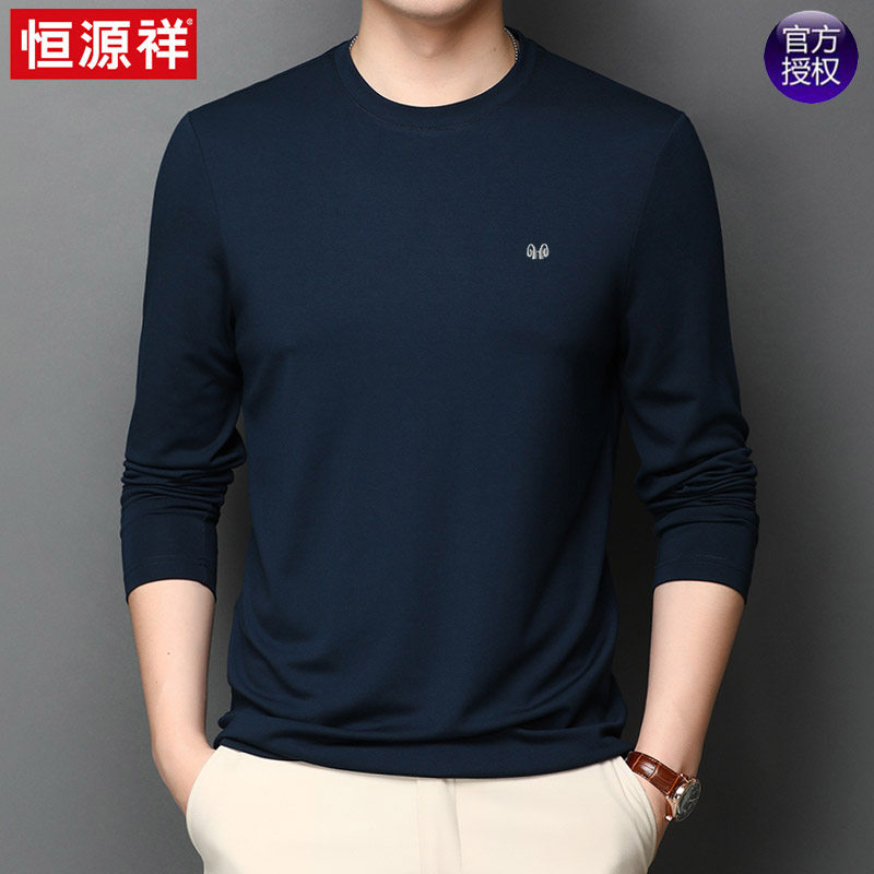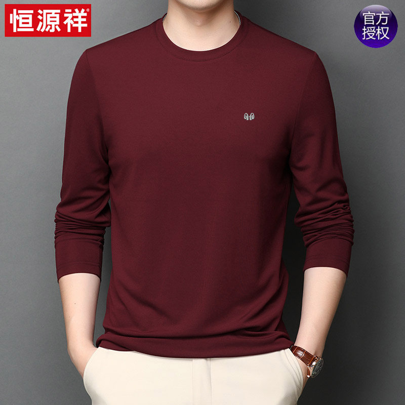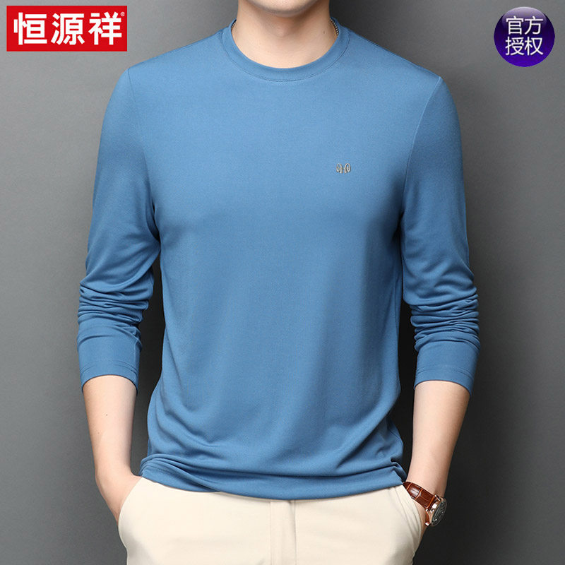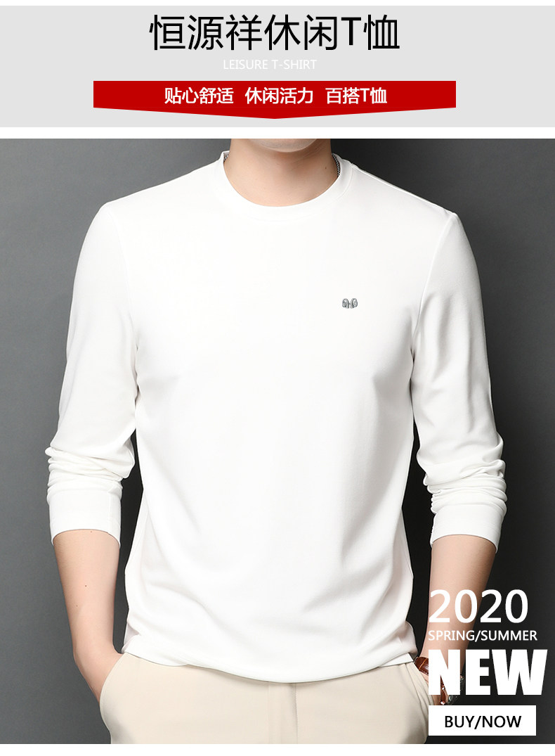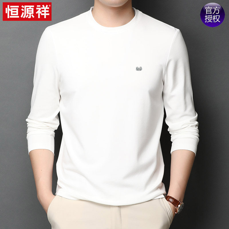 恒源祥 Осенняя шелковая футболка, мужской белый базовый приятный телу лонгслив с круглым воротником