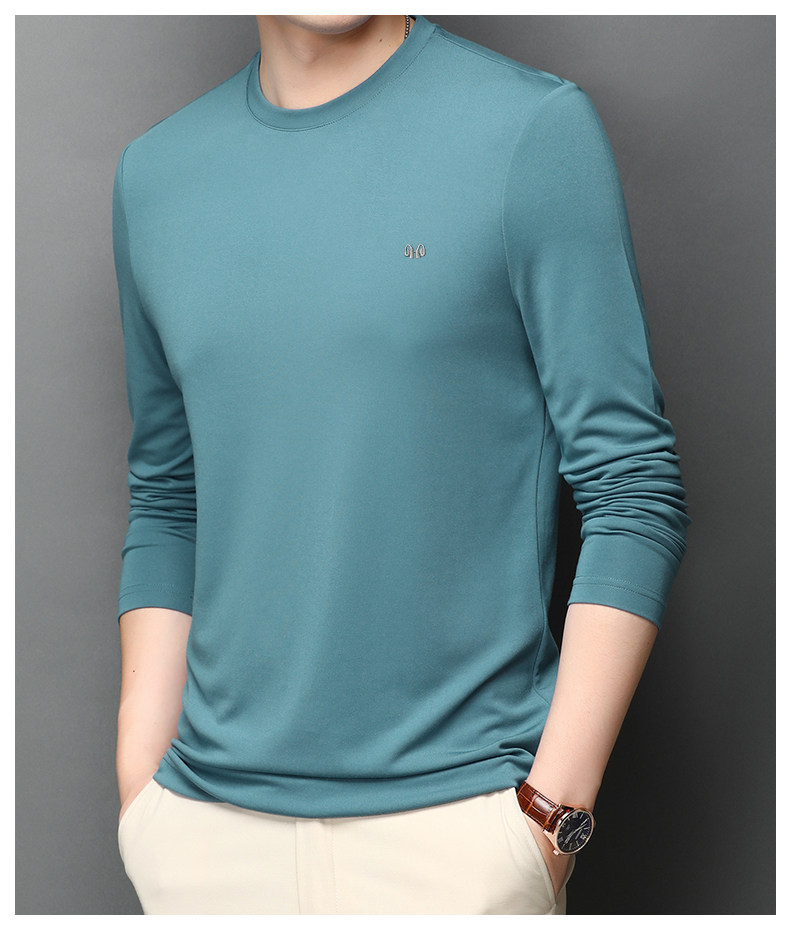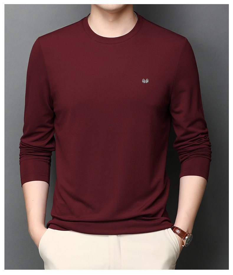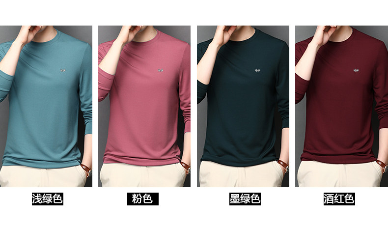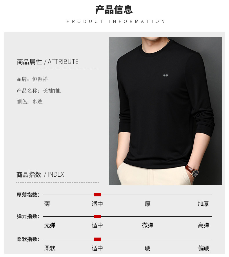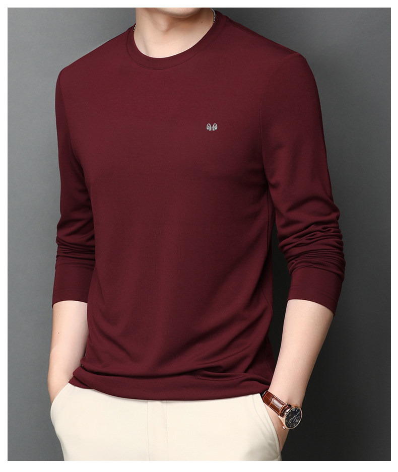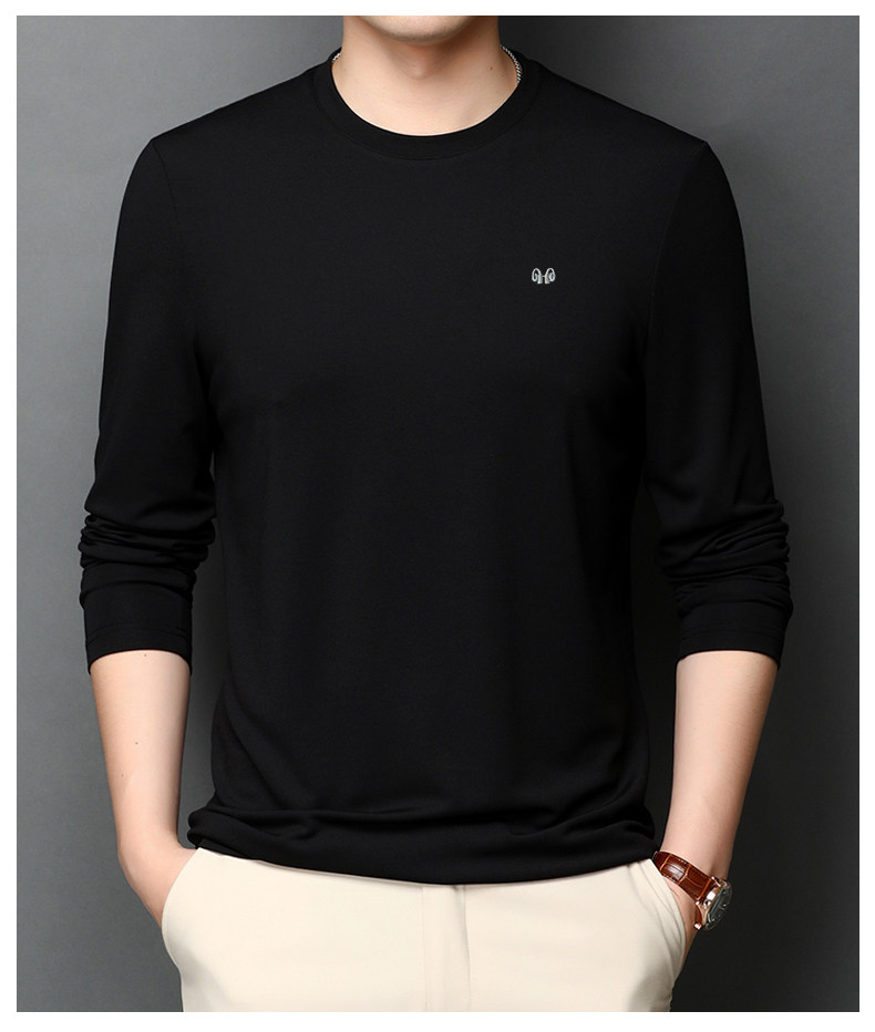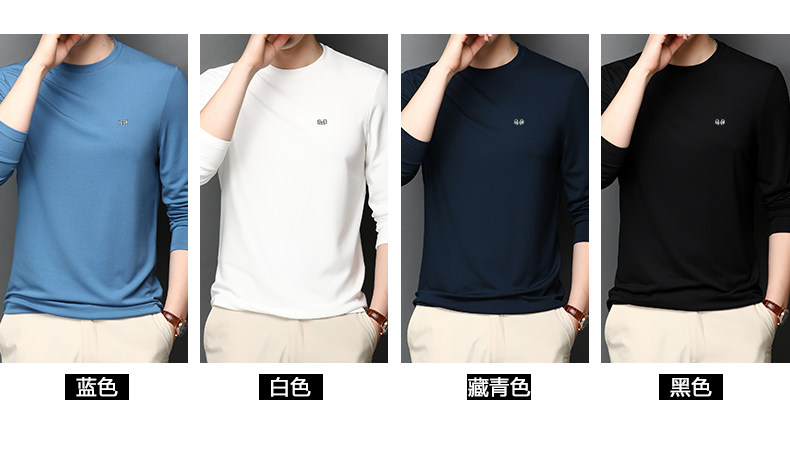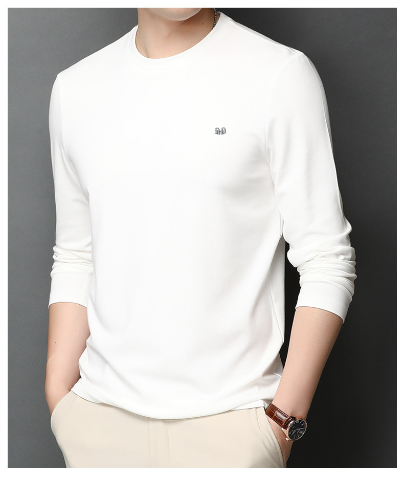 恒源祥 Осенняя шелковая футболка, мужской белый базовый приятный телу лонгслив с круглым воротником