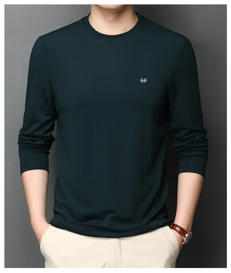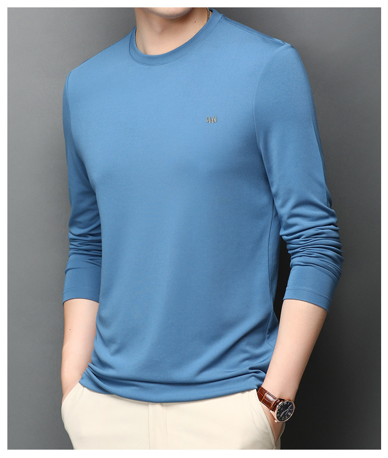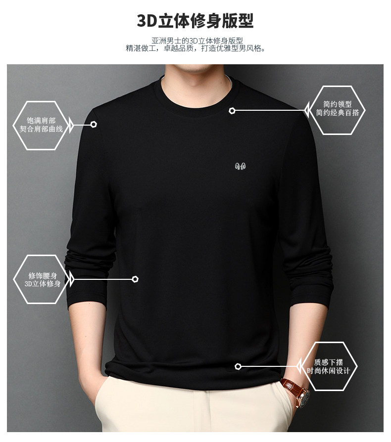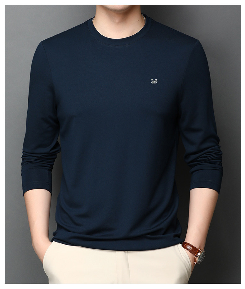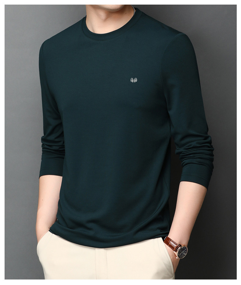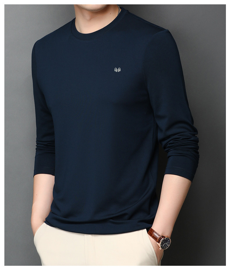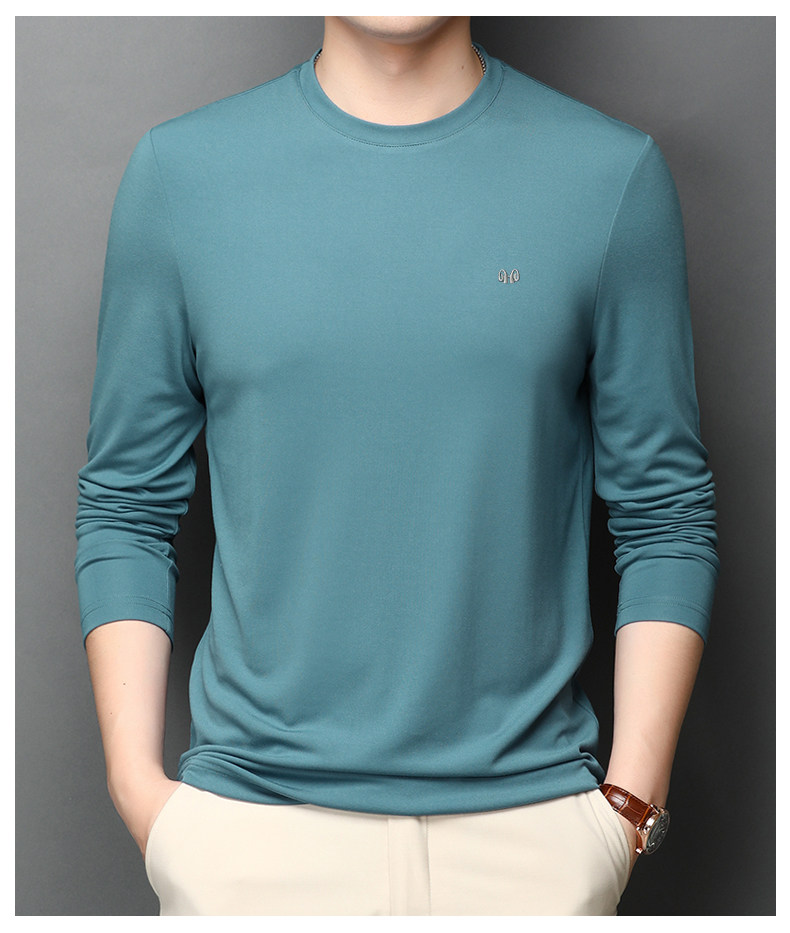 恒源祥 Осенняя шелковая футболка, мужской белый базовый приятный телу лонгслив с круглым воротником