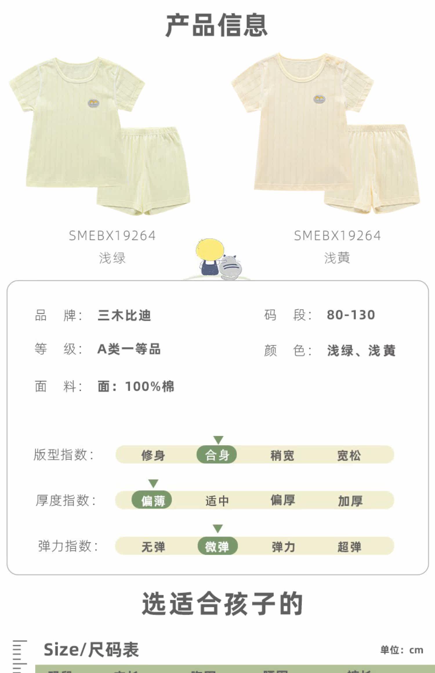 三木比迪 Нижнее белье, летний тонкий детский комплект, хлопковая детская пижама, короткий рукав