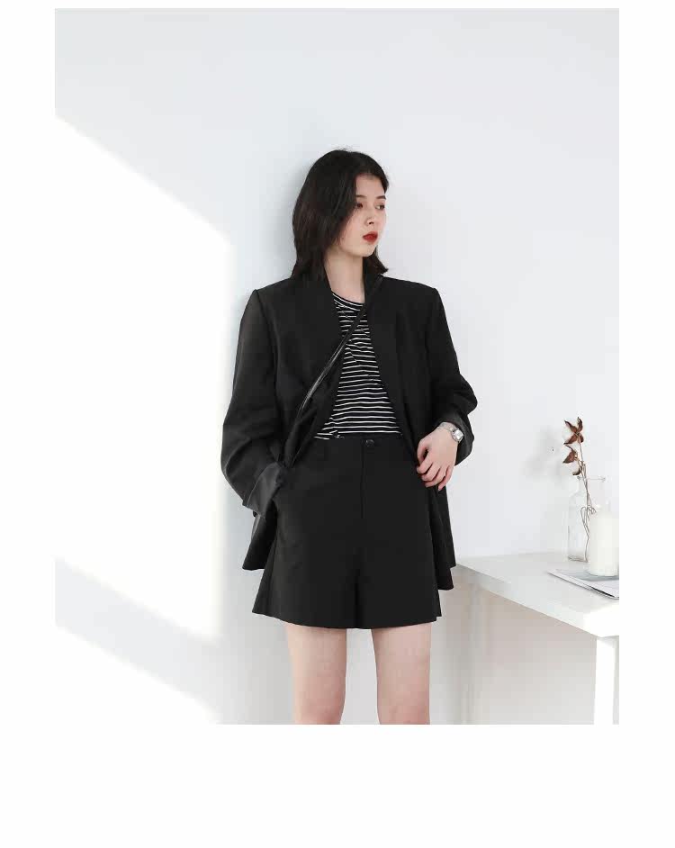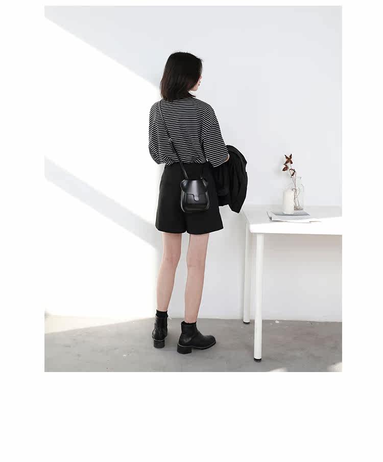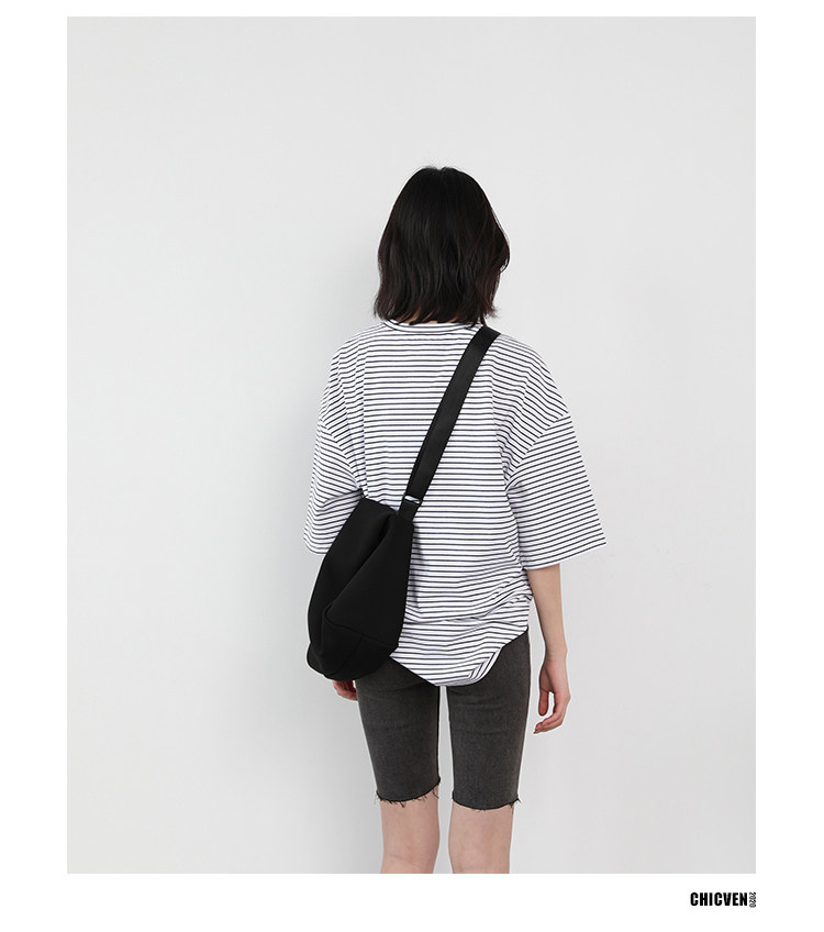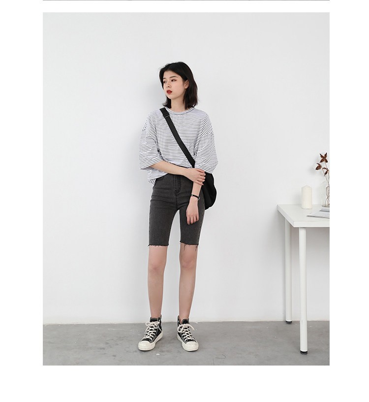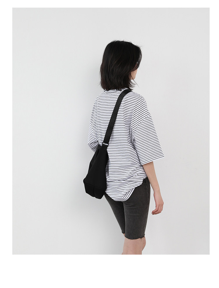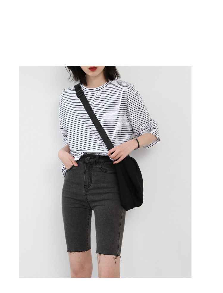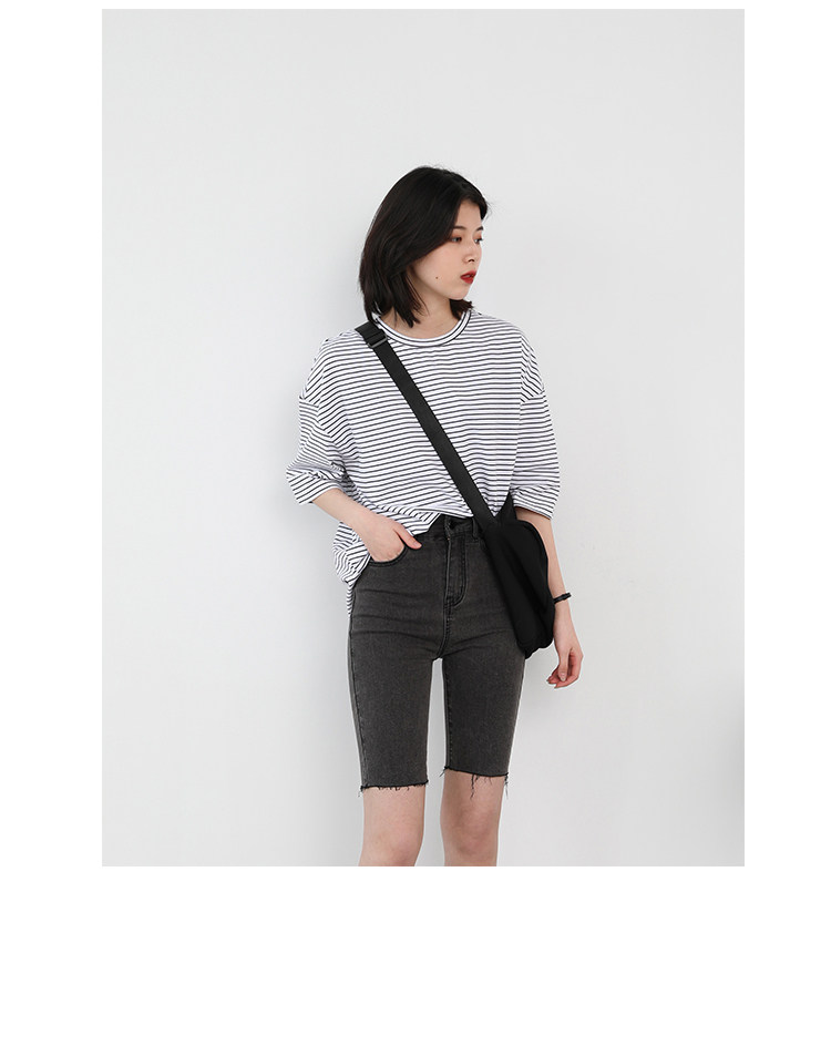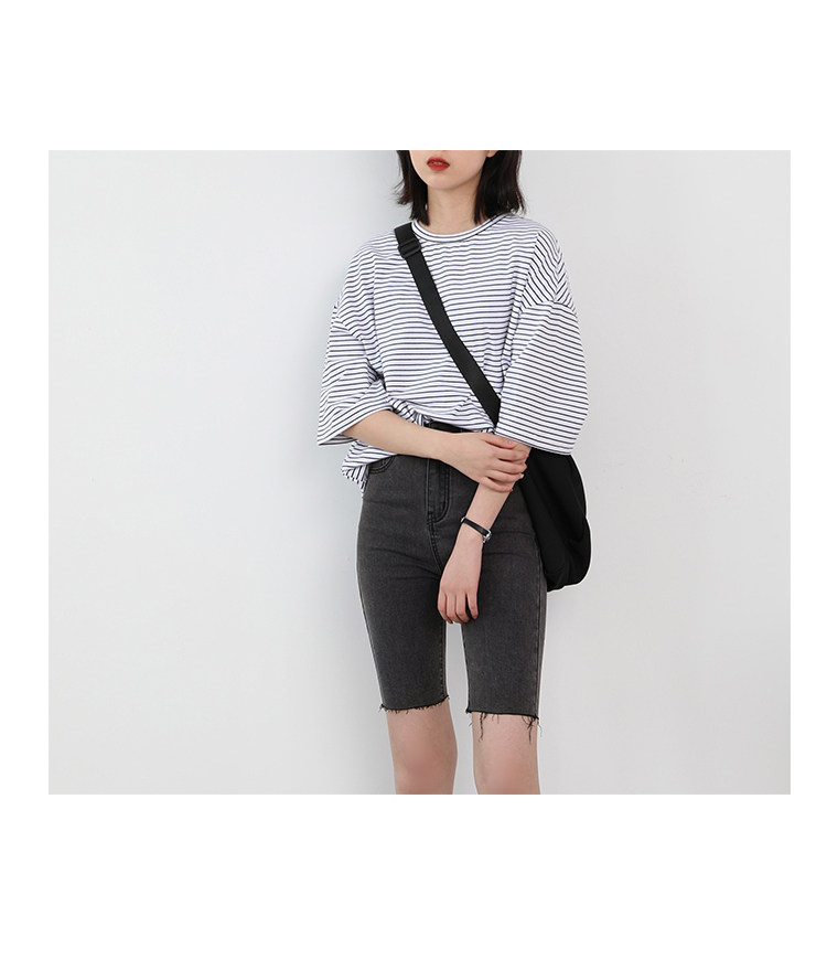 Круглая шея и цветовая нить край, тонкое снижение возраста ZhiСвободный пять -точечный дизайн рукава, скрытое поклонение мясоШитье автомобиля плоское и плотное, показывая ощущение деталей мастерстваЧерно -белые полосы, классическиеНелегко взглянуть на универсальный