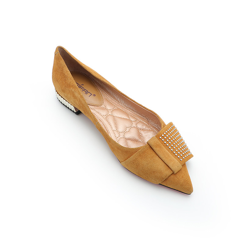 Европейская станция модная овчина лук, заклепка, низкая каблука.