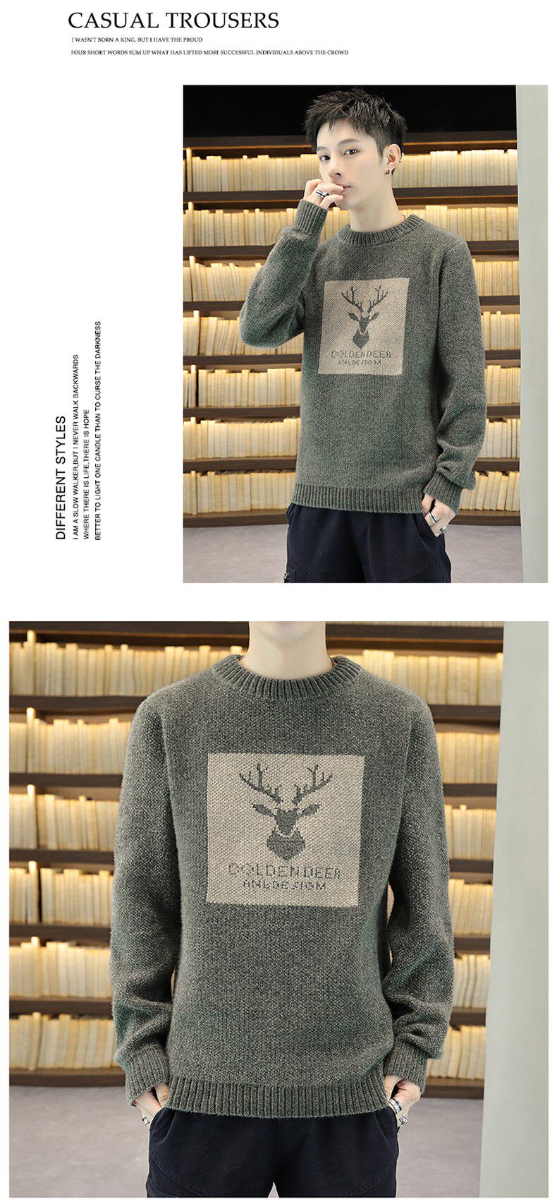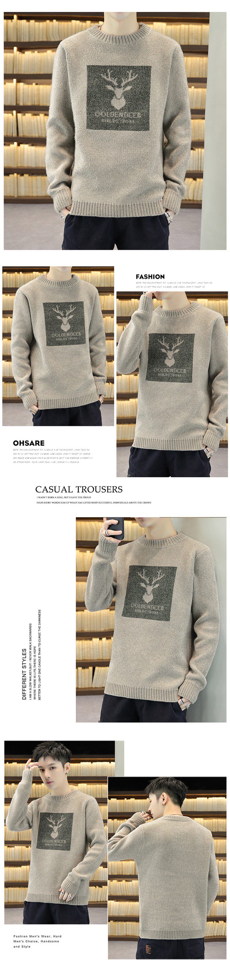Мужской демисезонный свитер, трендовый трикотажный шерстяной кардиган, в корейском стиле, увеличенная толщина
