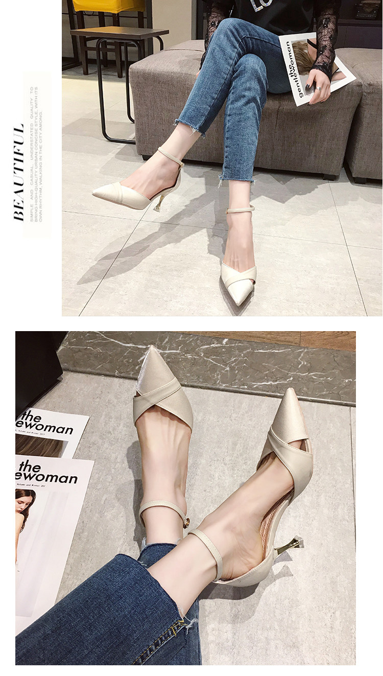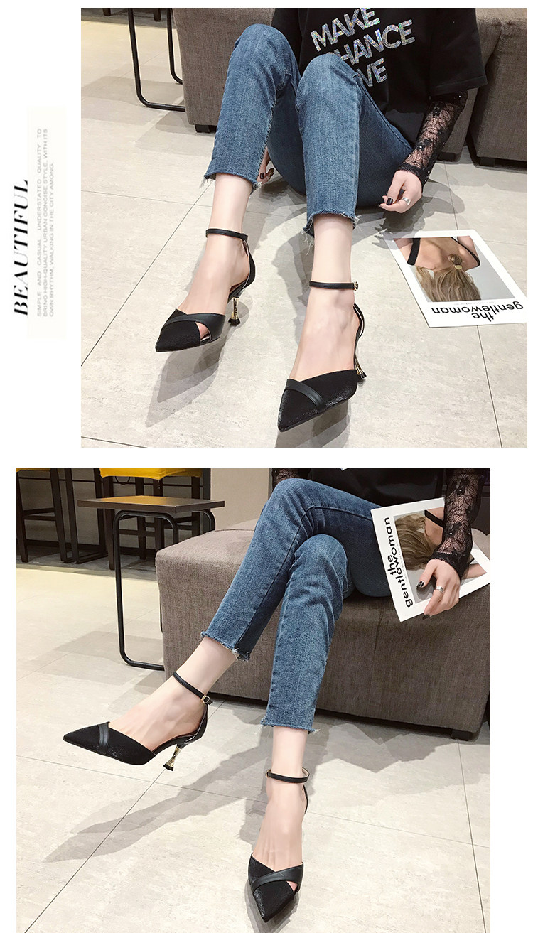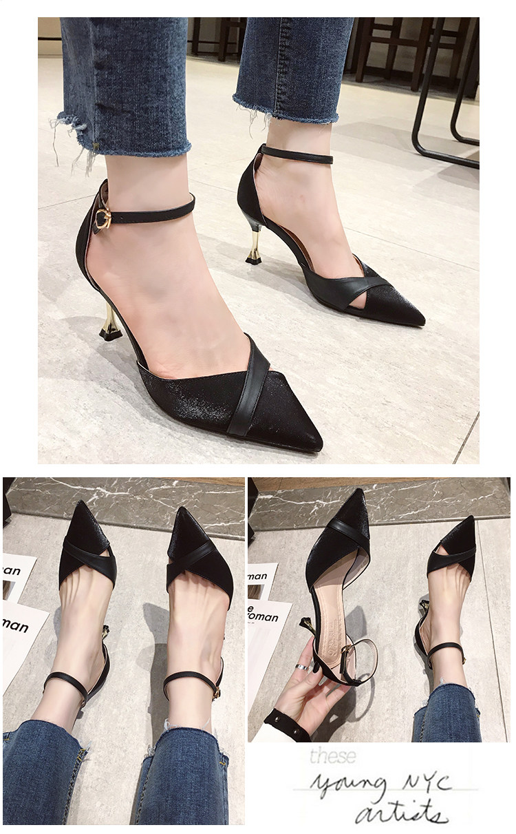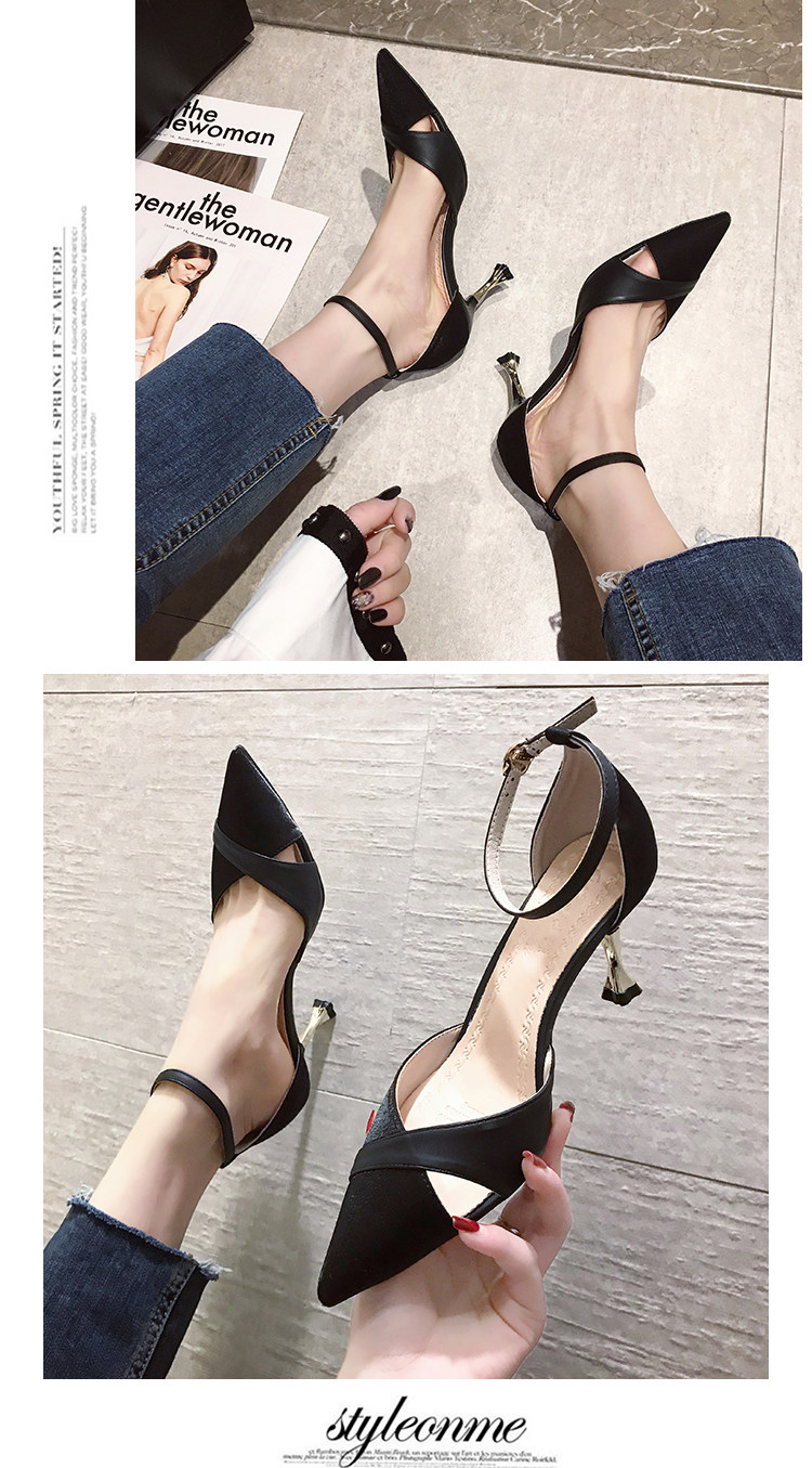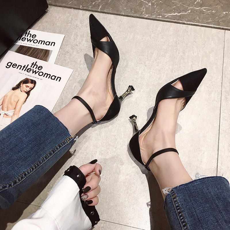Весенняя обувь с заостренным носом, универсальные высокие сандалии с низким вырезом на высоком каблуке