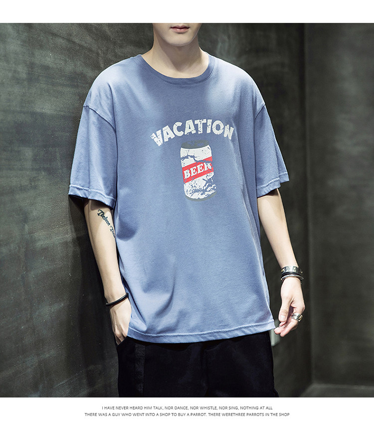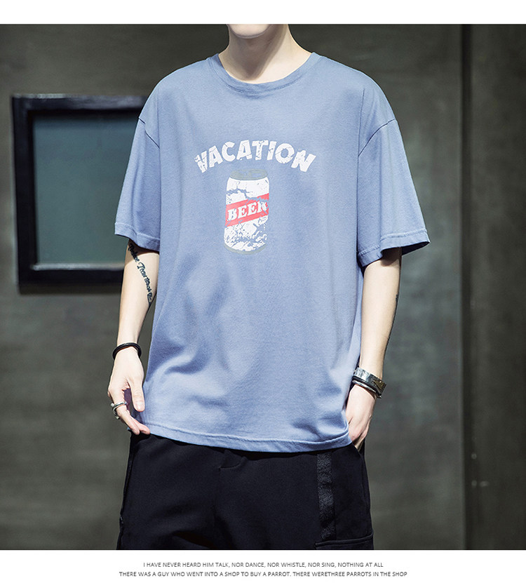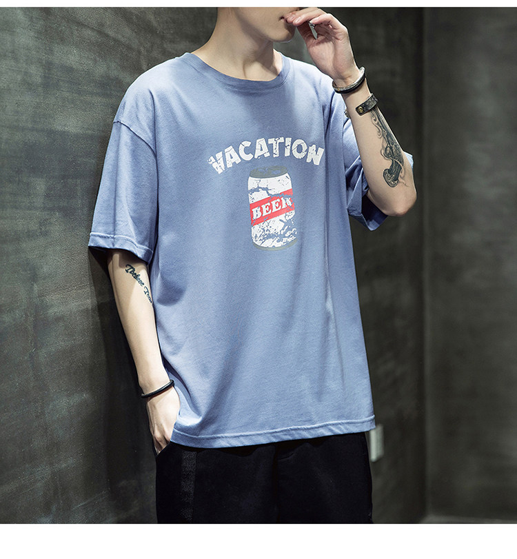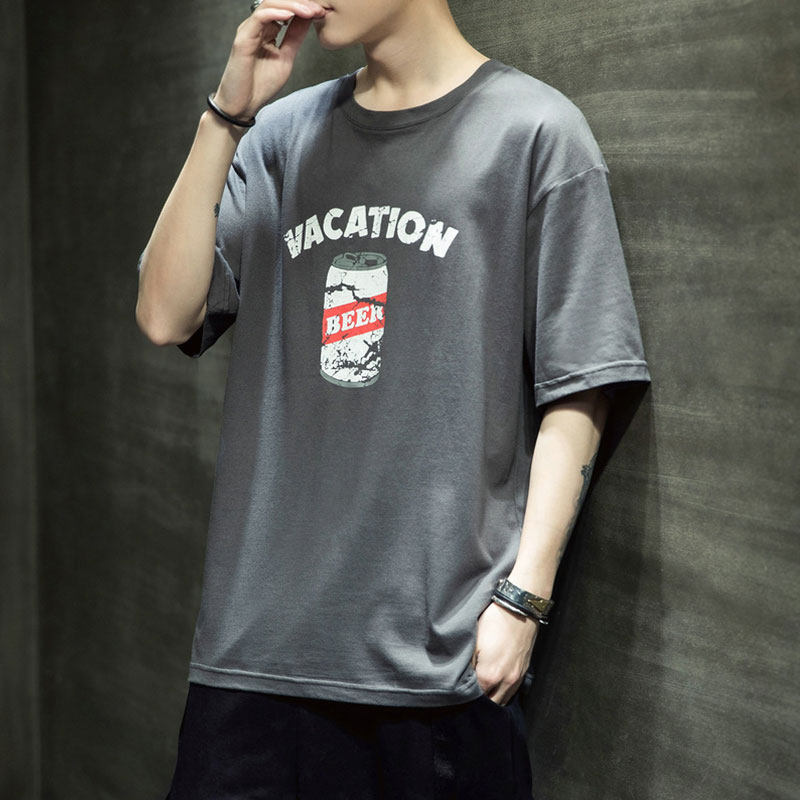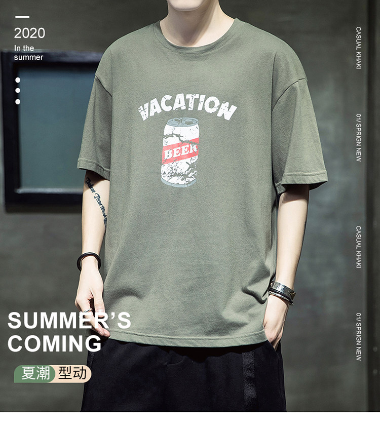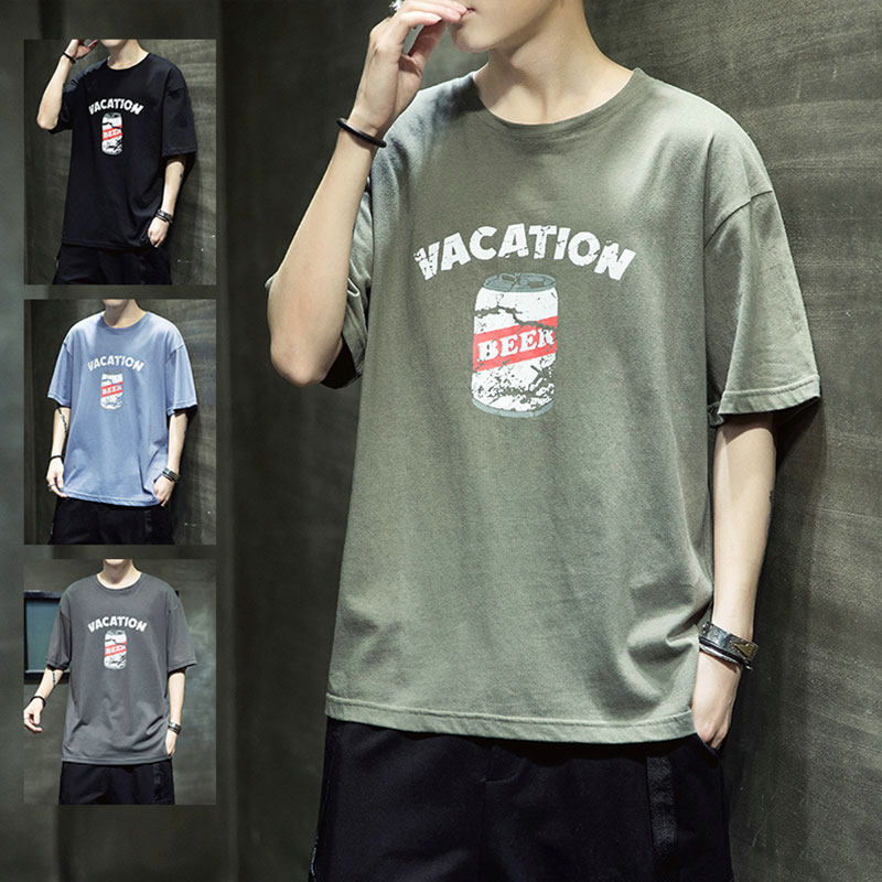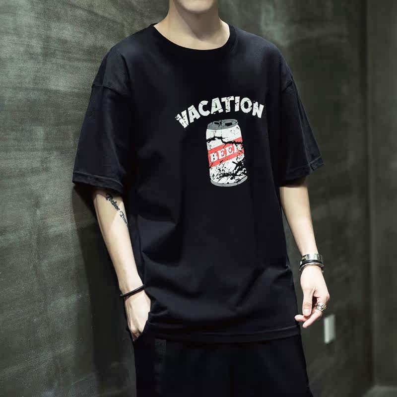 Летняя хлопковая базовая приятная телу модная футболка с коротким рукавом с круглым воротником, принт