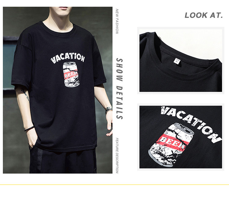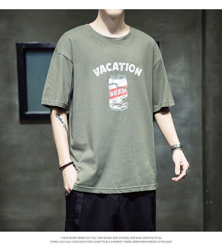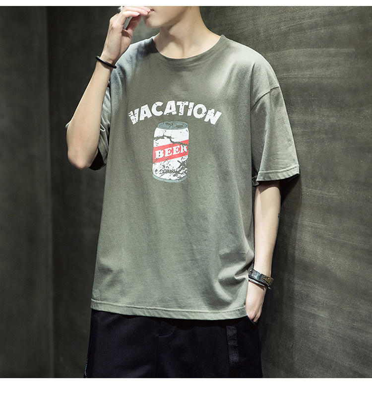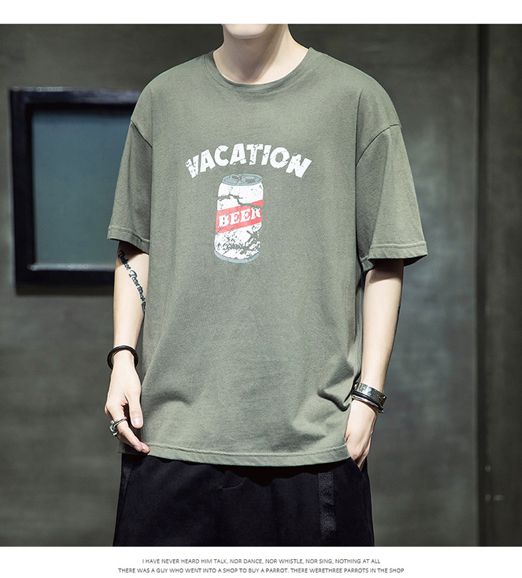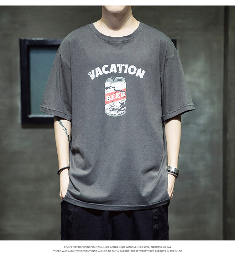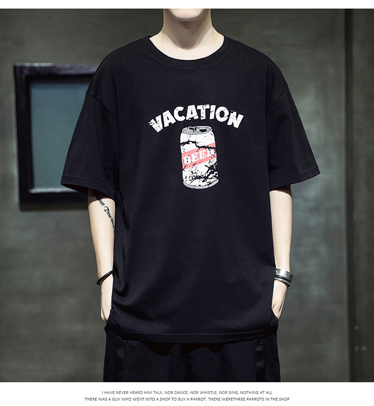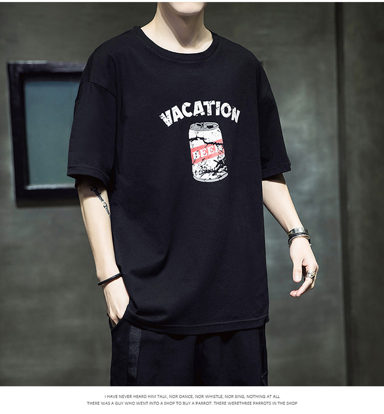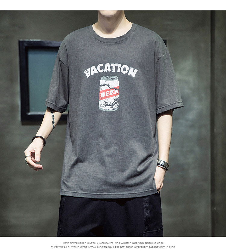 Летняя хлопковая базовая приятная телу модная футболка с коротким рукавом с круглым воротником, принт