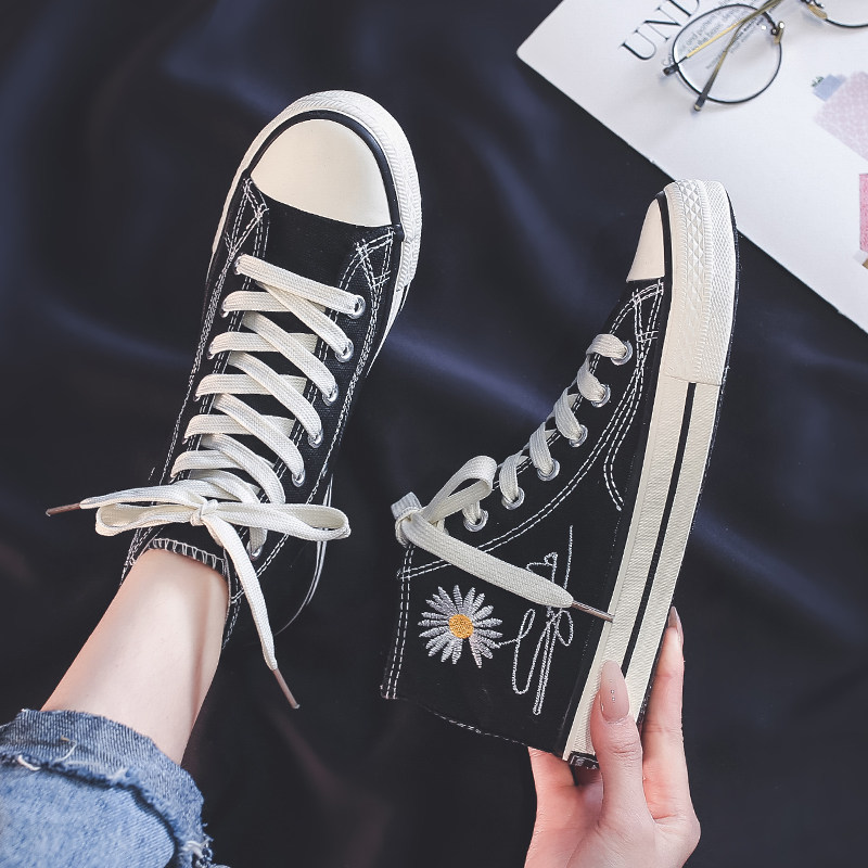 Черные сетчатые высокие тканевые универсальные летние кроссовки для отдыха, популярно в интернете, 2020, в корейском стиле