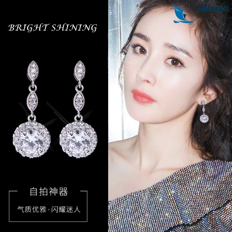 Длинные универсальные серьги с кварцем с цирконом, популярно в интернете, серебро 925 пробы