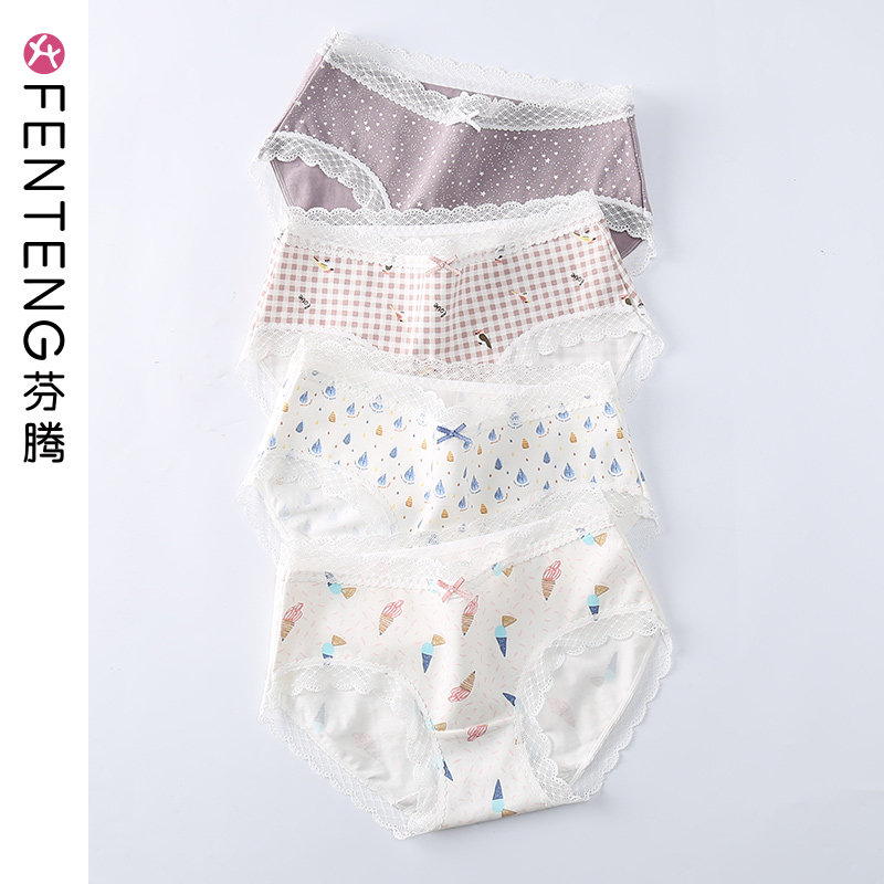 芬腾 Нижнее белье, японские штаны, хлопковое антибактериальное белье для коррекции формы бедер, милые трусы, средняя посадка
