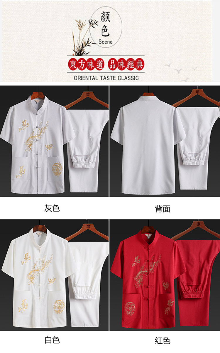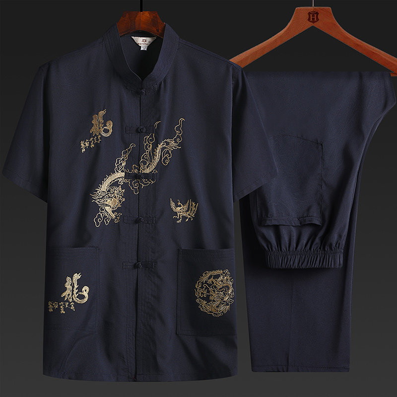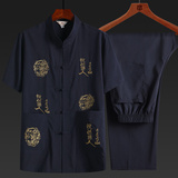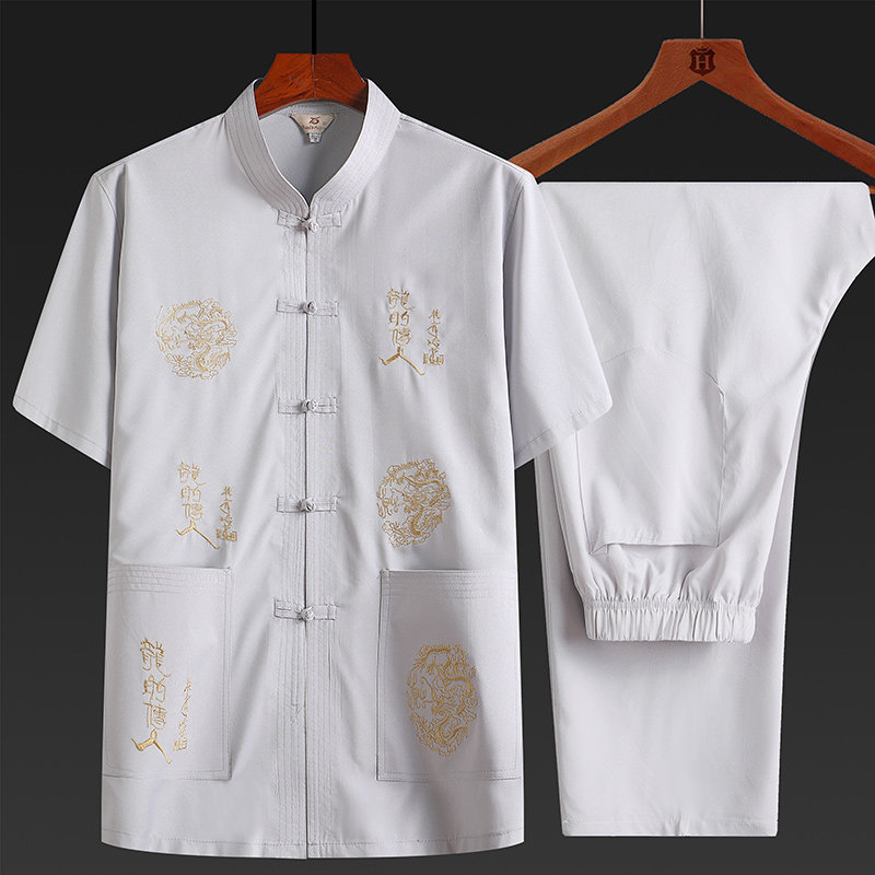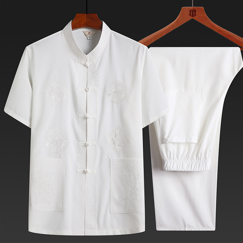 Летняя одежда для пожилых людей, комплект, ханьфу, для среднего возраста, короткий рукав, китайский стиль, с вышивкой, свободный крой, большой размер