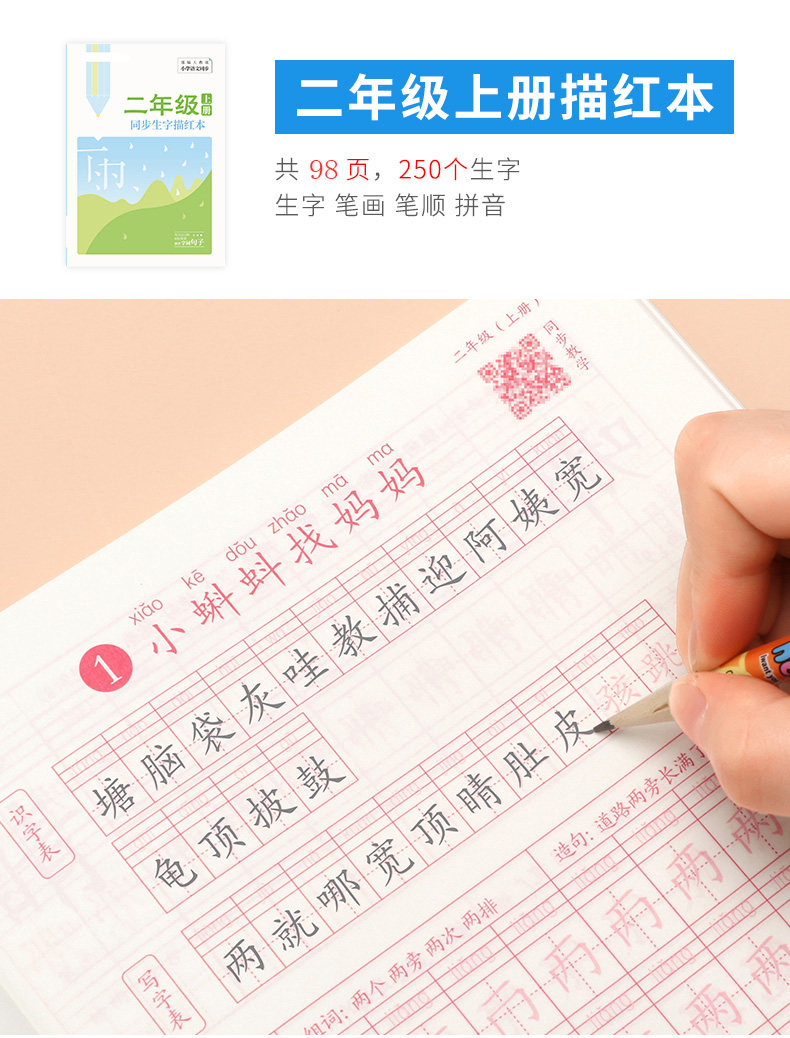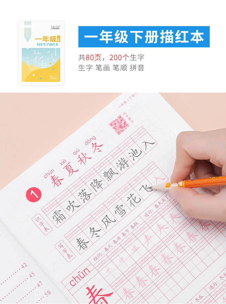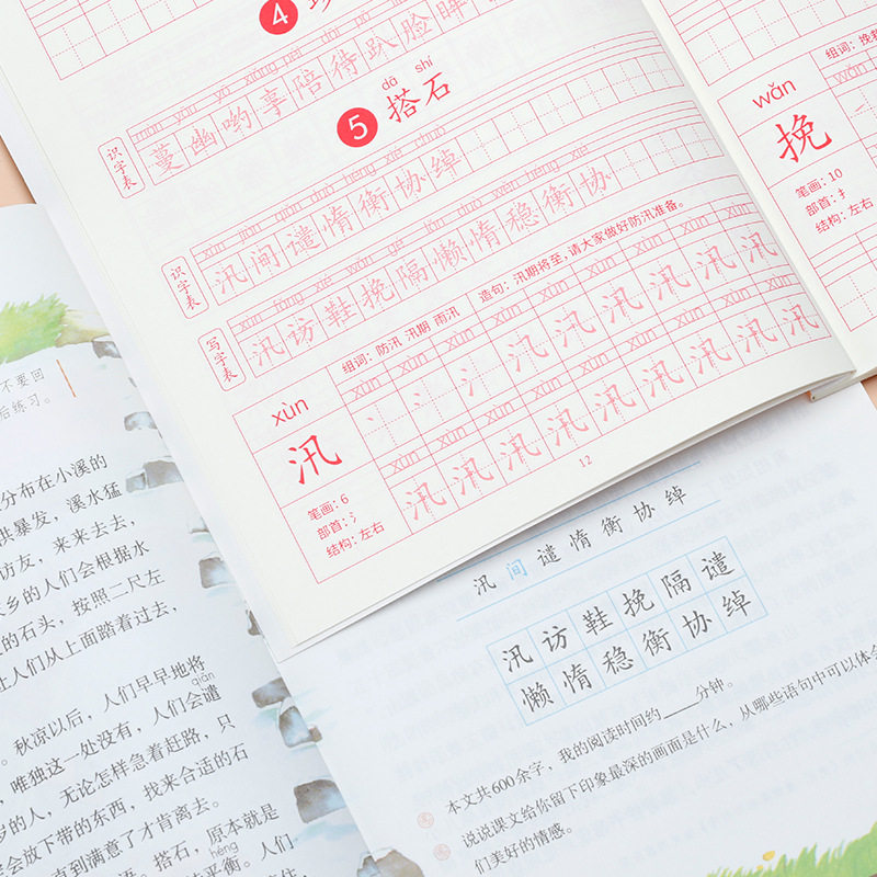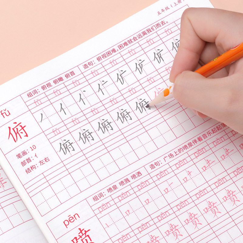 Первые ученики начальной школы практикуют посты, вторые классы, три, четыре, пять постов -Шарактер, книги, закладки, китайские учебники Синхронные рисунки, картина кисти, специальная каллиграфия с жесткой ручкой, в этот день, ежедневная младшая ученая копия Пост Детский обычный сценарий