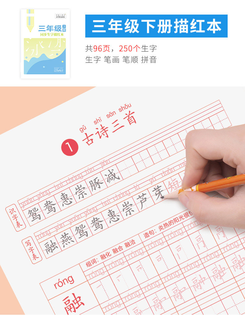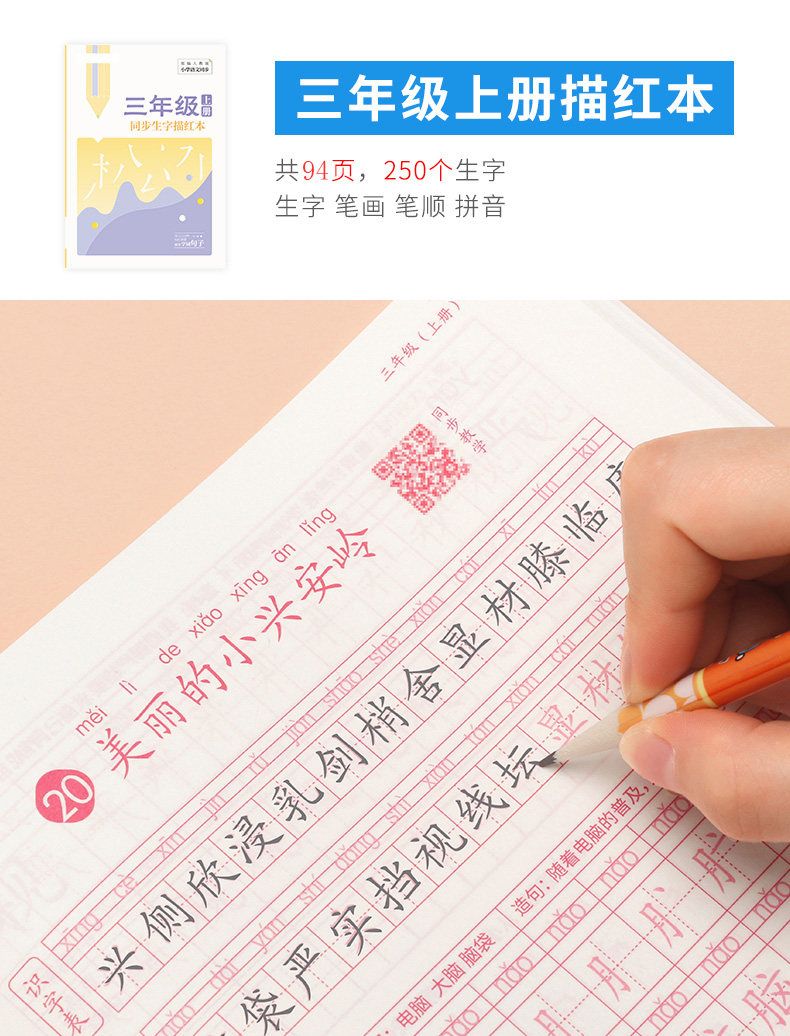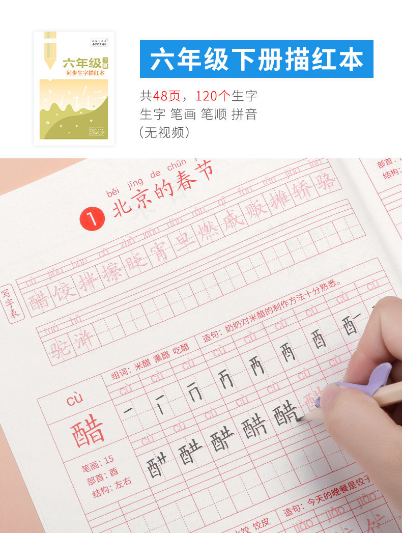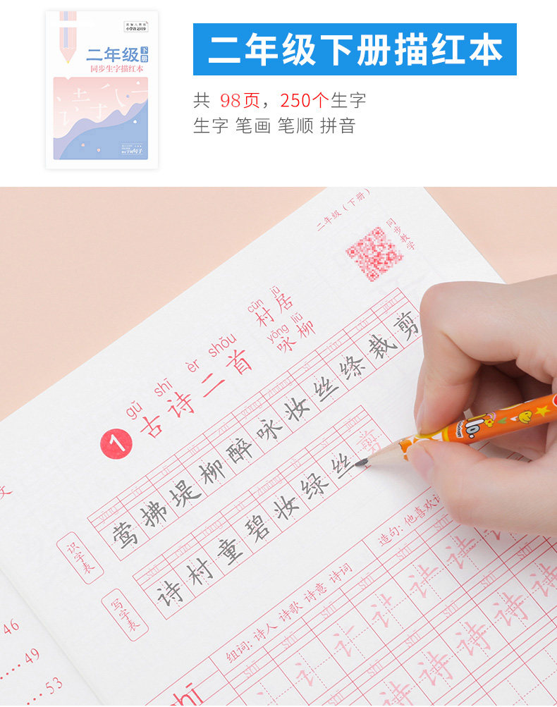 Первые ученики начальной школы практикуют посты, вторые классы, три, четыре, пять постов -Шарактер, книги, закладки, китайские учебники Синхронные рисунки, картина кисти, специальная каллиграфия с жесткой ручкой, в этот день, ежедневная младшая ученая копия Пост Детский обычный сценарий