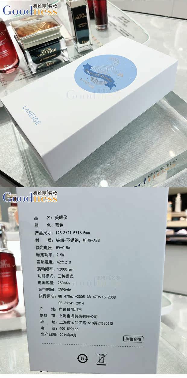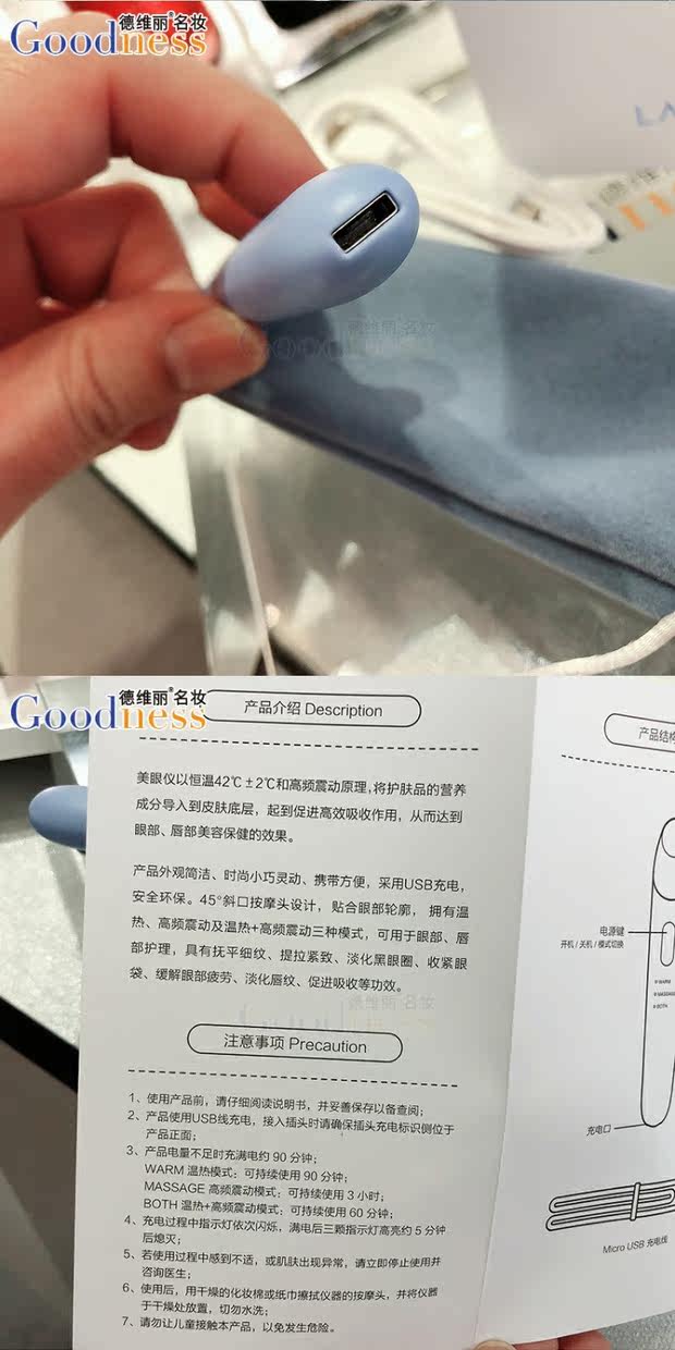 Домашний счетчик Lanzhi Blue Beauty Eye Vibration Vibration+теплый USB -зарядный крем для глаз Essence infit