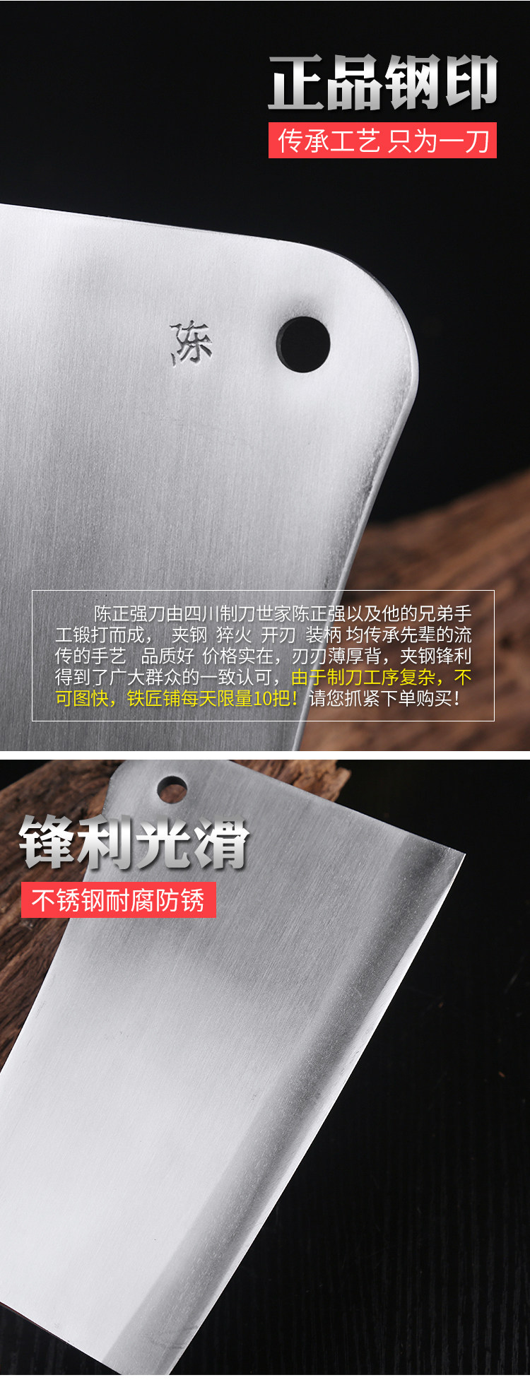 陈正强 Ручная ручная ручная ручная рубка нож кованый из нержавеющей стали.