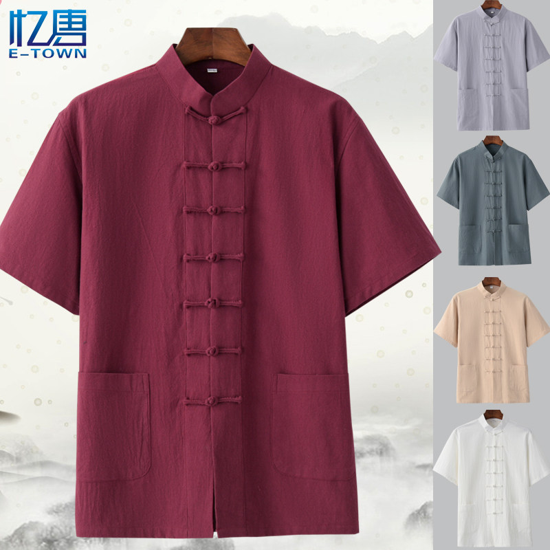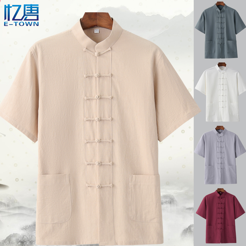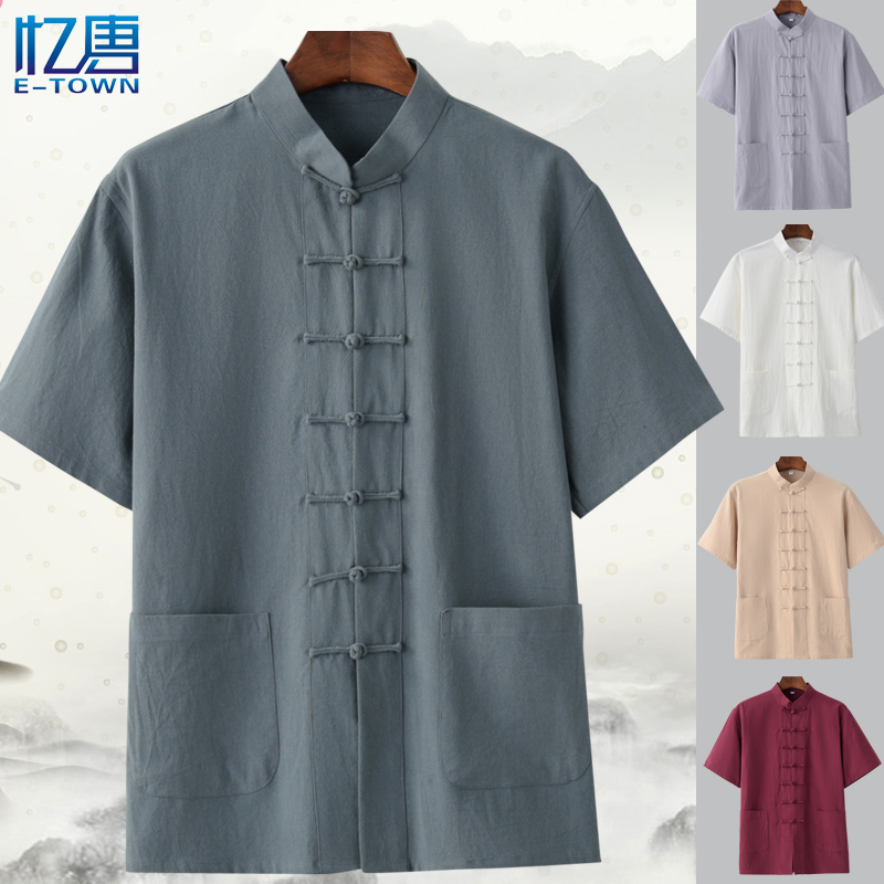 Летнее тонкое ретро ханьфу, короткий рукав, из хлопка и льна, китайский стиль
