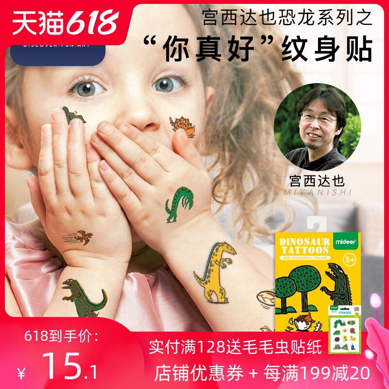 Детский динозавр, водонепроницаемые безопасные нетоксичные тату наклейки