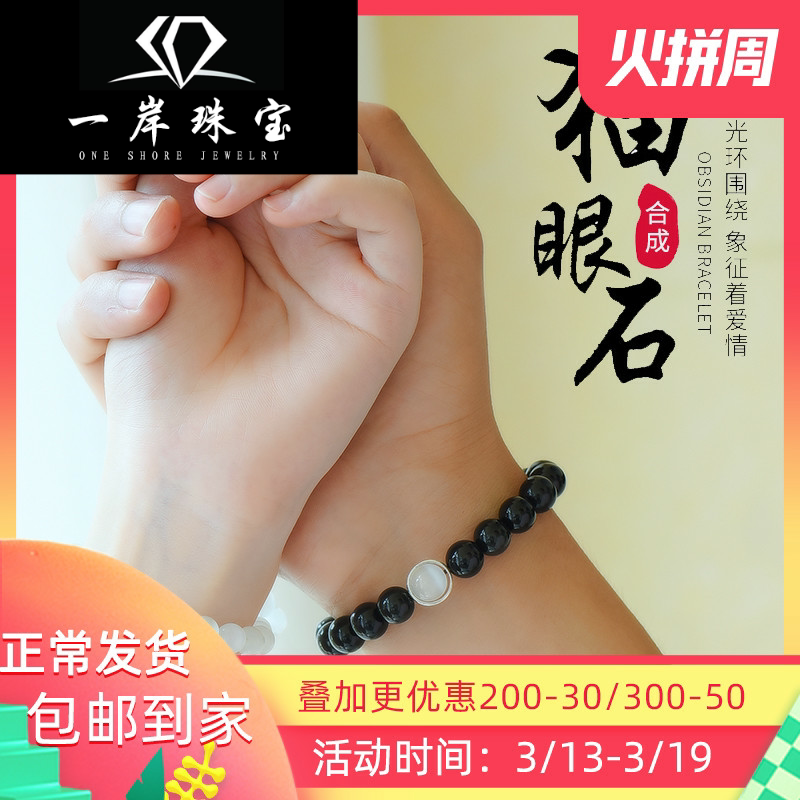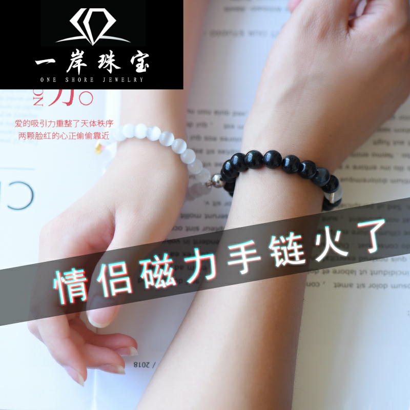 Магнитный браслет для влюбленных из натурального камня подходит для мужчин и женщин, кошачий глаз, серебро 925 пробы