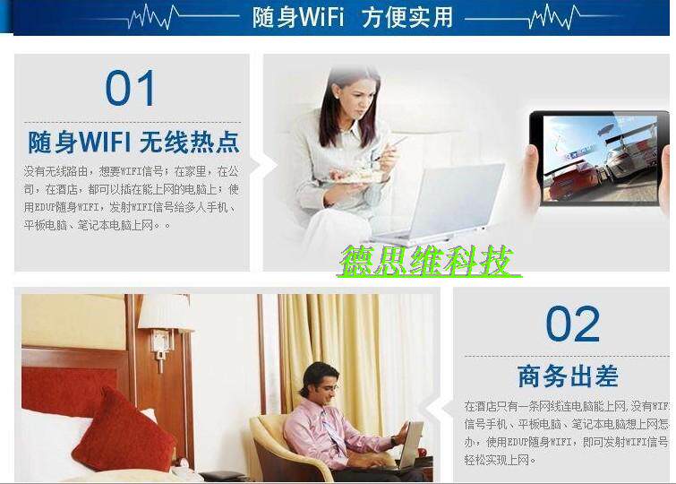 Во -вторых, запустить сигнал Wi -Fi:Это особенно подходит. В случае без беспроводного маршрутизатора ряд устройств Wi -Fi поделился интернетом, вставьте это устройство в интерфейс USB, который может получить доступ к Интернету, и установить сигнал Wi -Fi, чтобы разрешить настольные компьютеры, ноутбук, средний планшет с беспроводными сетевыми картами и средними планшетами., iPad, мобильные телефоны с функцией Wi -Fi (например, iPhone4) получают беспроводные сигналы после настройки и делитесь интернетом.