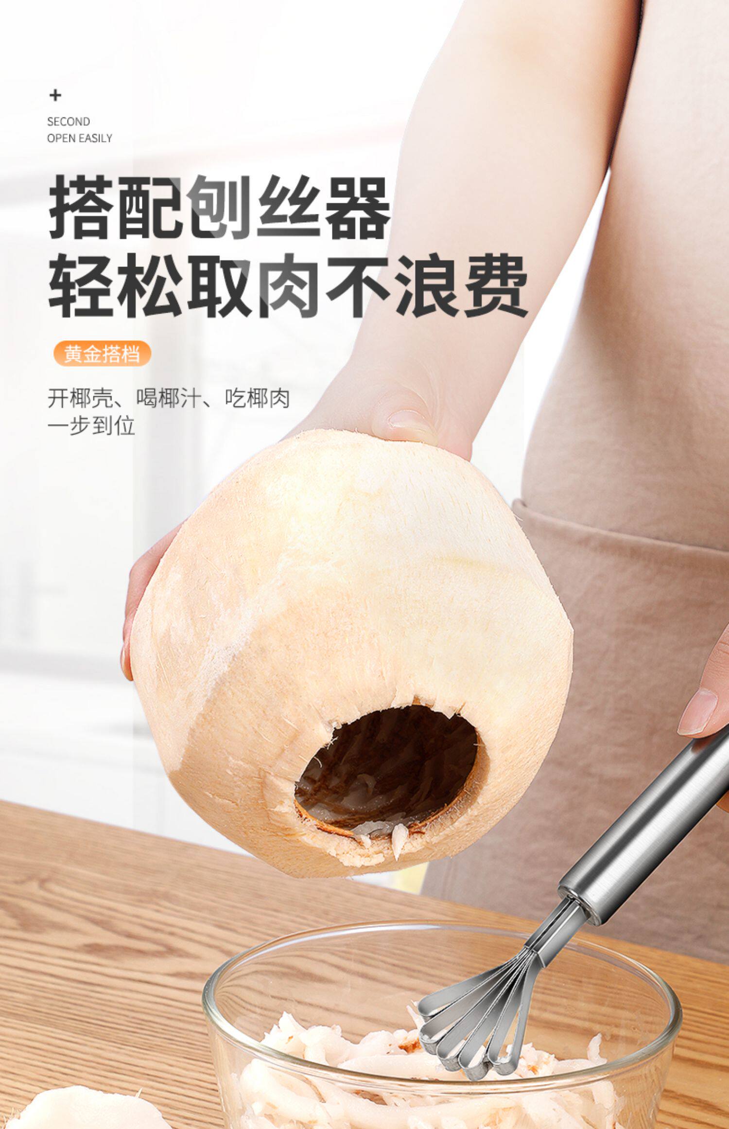 | Цвет: | 【304 Нестандартная сталь】 Кокосовый инструмент, 【304 нержавеющая сталь】 Кокосовая посуда+молоток, [304 из нержавеющей стали] Кокосовый инструмент+молоток+кокосовый мясник., [Одиночная установка] Устройство открытия кокосового ореха |