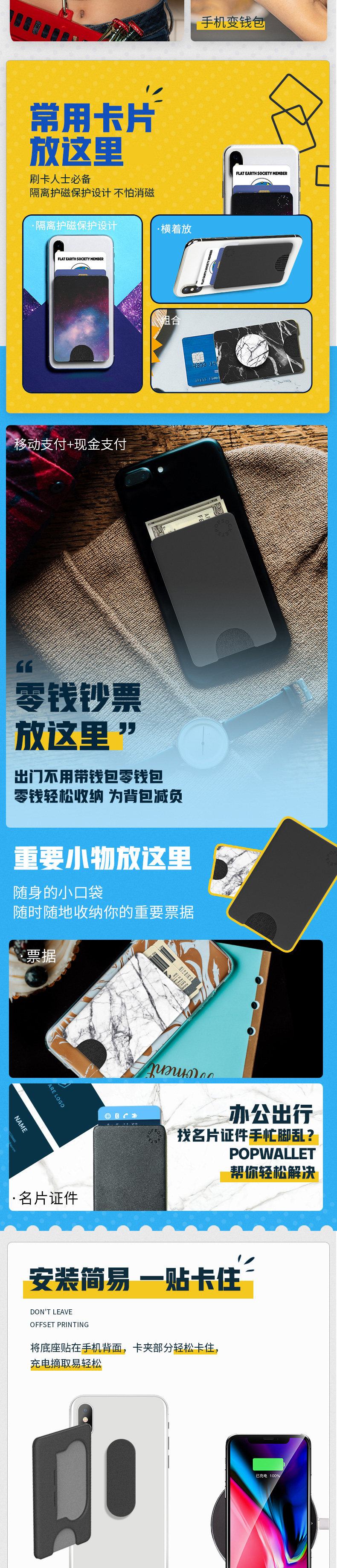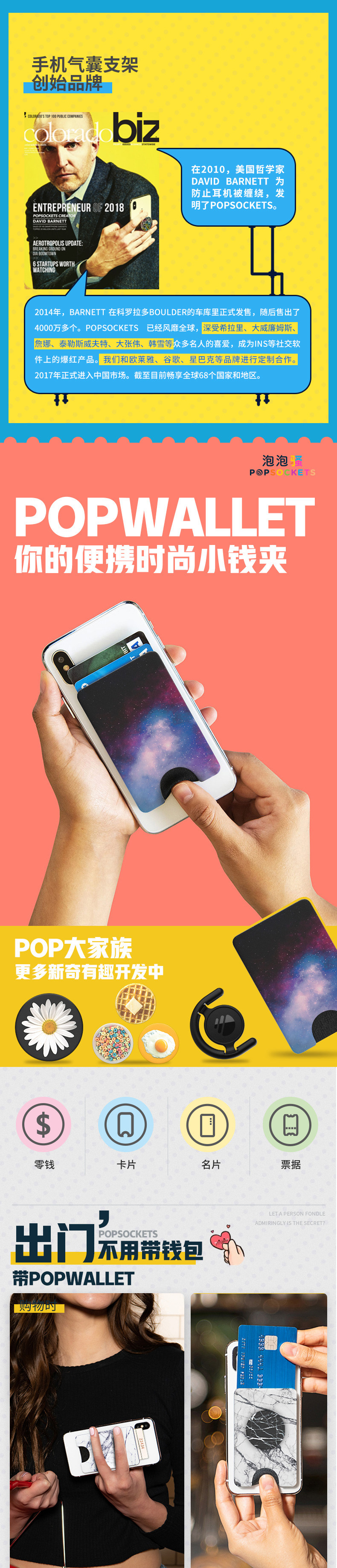 PopSockets Мобильный телефон, мультяшный кошелек, универсальный ультратонкий картхолдер для визитных карточек