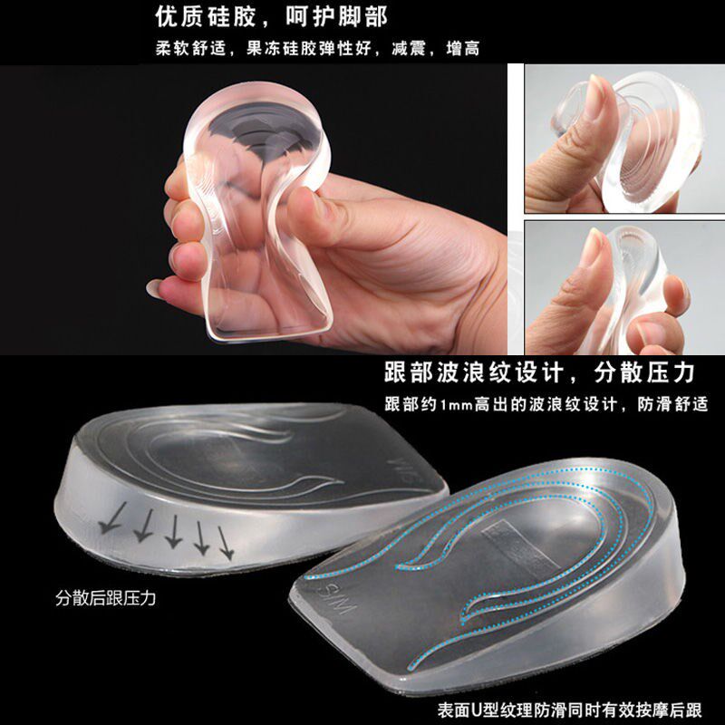 [内鞋垫女半垫硅胶隐形运动鞋男女式1/2/3cm舒适减震垫女]