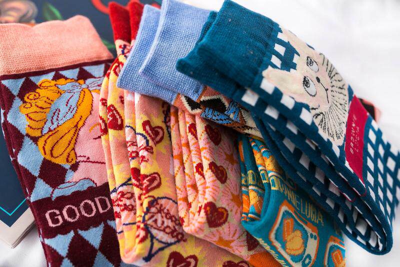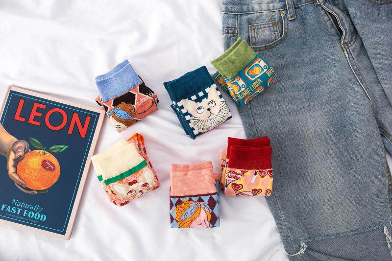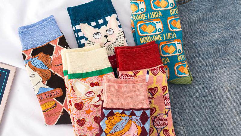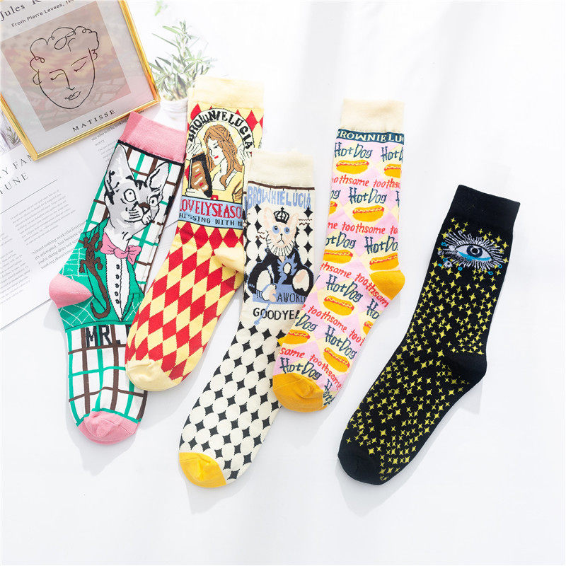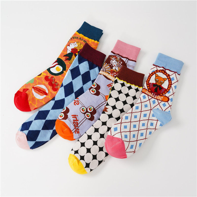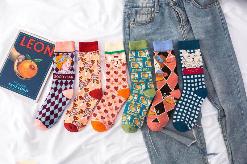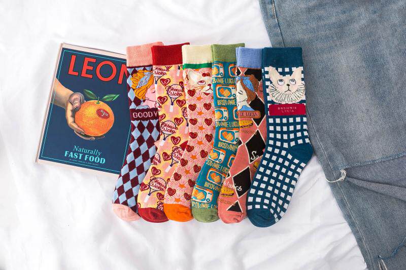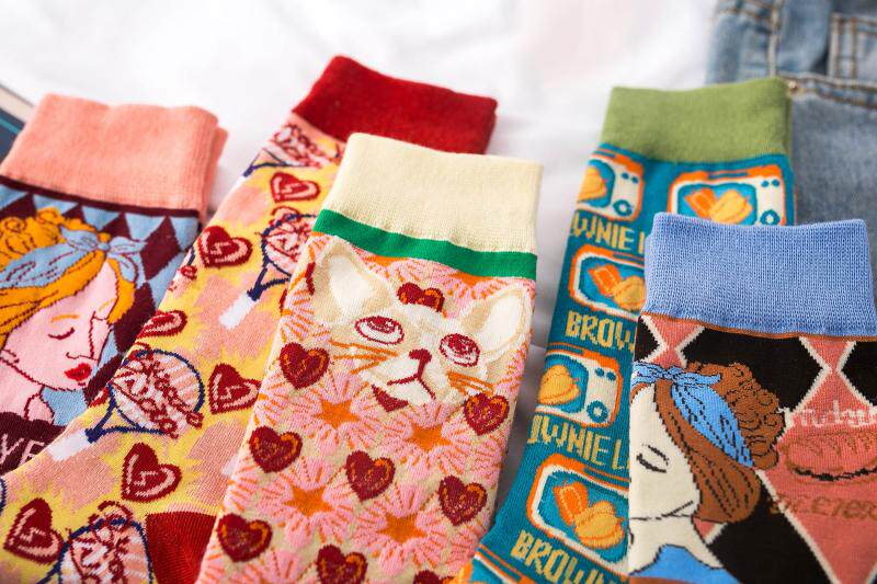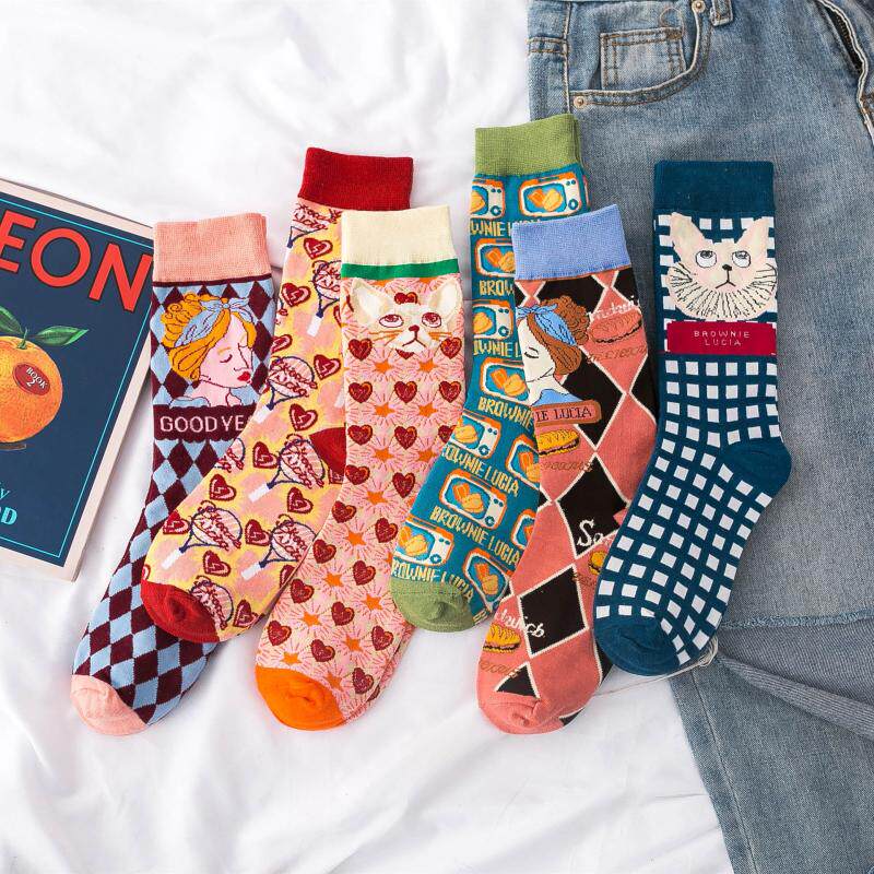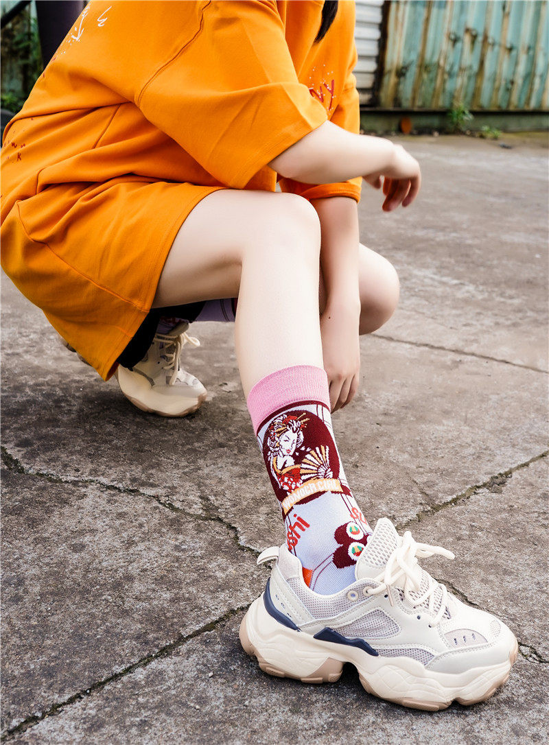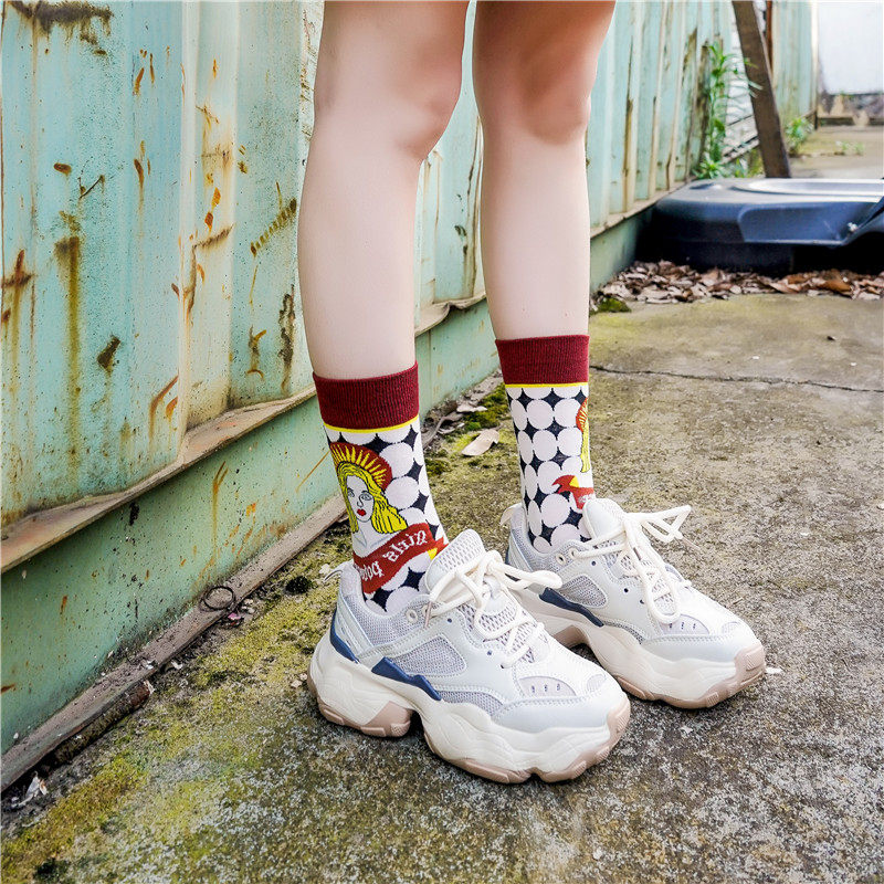 3 двойные ретро -иллюстрации женские носки европейские и американские древние сети красная лолита лолита