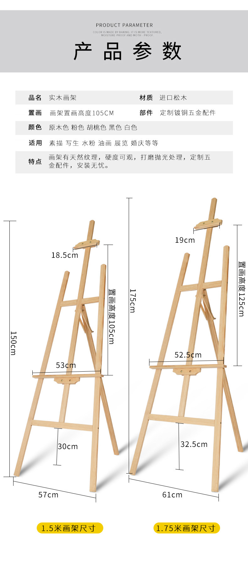Доска для рисования из натурального дерева, деревянный складной универсальный комплект, художественная детская акварель для начинающих, трубка, стенд, 1.75м