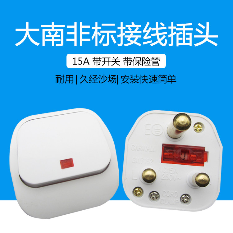 Трехкруглая небьющаяся вилка, проводная вилка 15А, большая южноафриканская вилка, трехходовая вилка BS546, сетевая вилка с переключателем