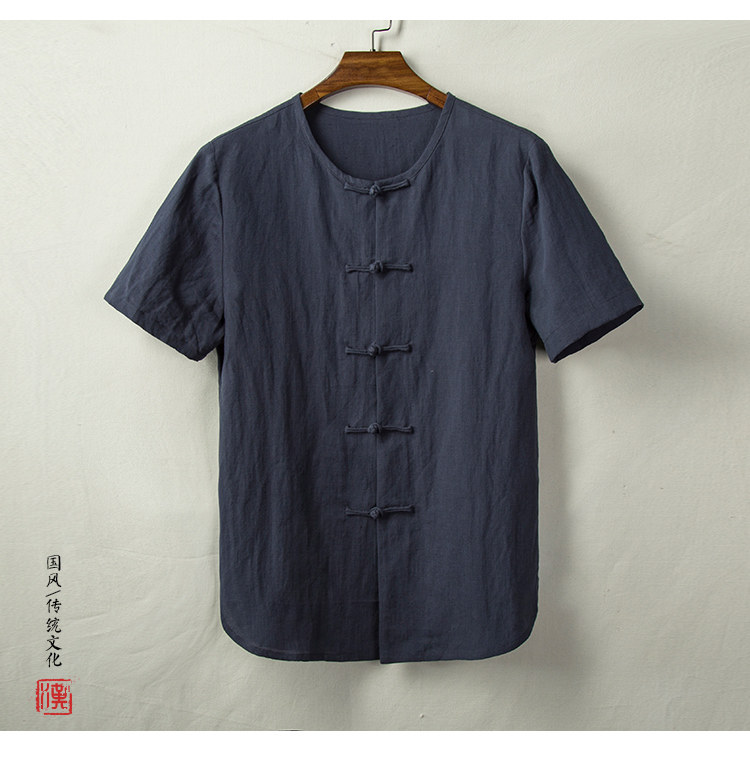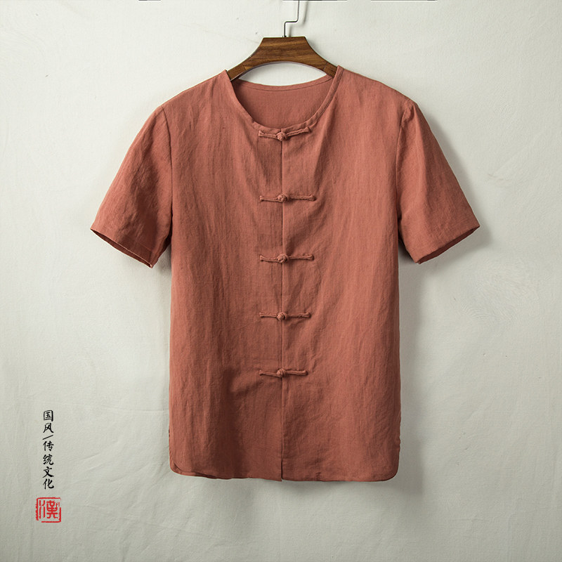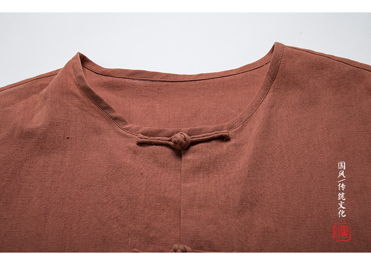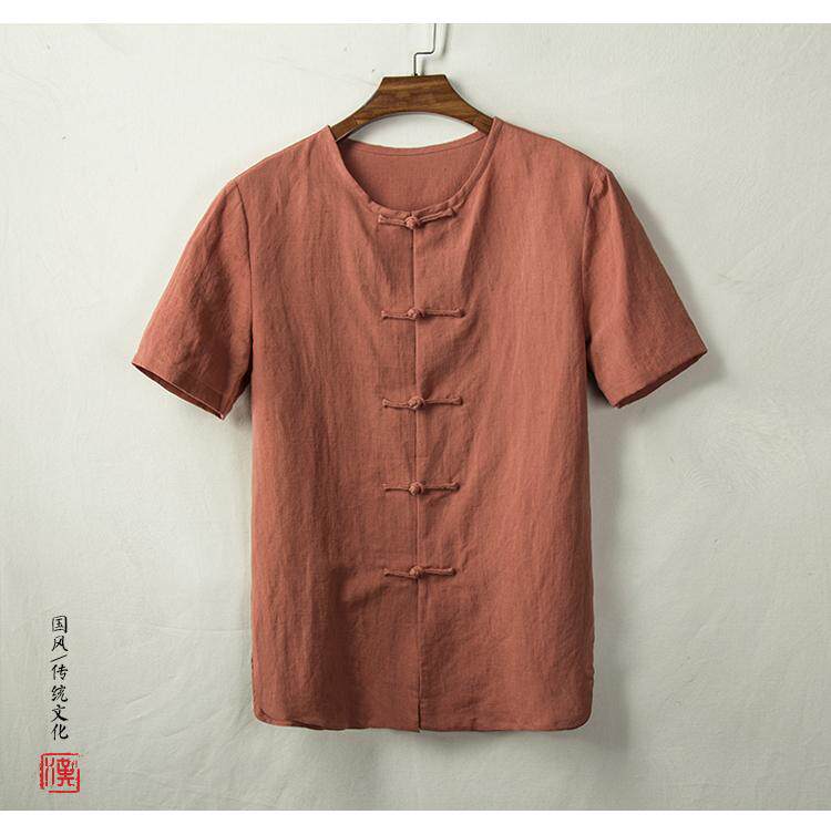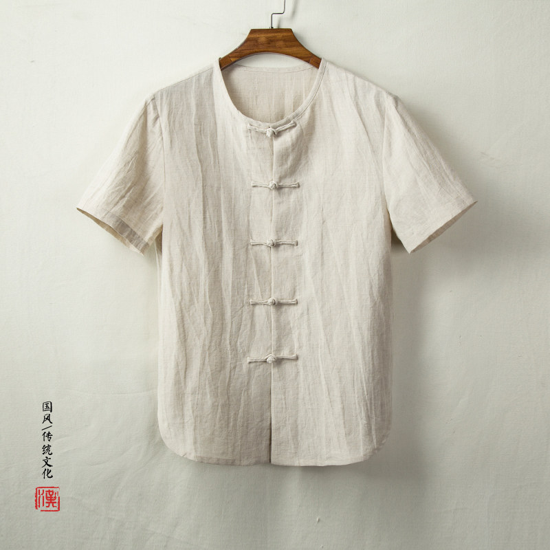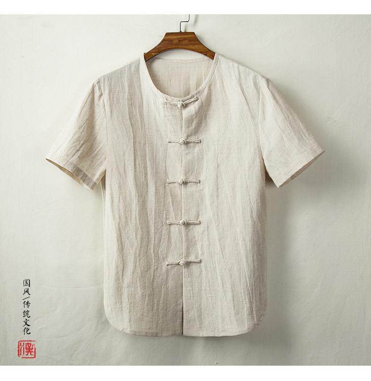 Тонкая ретро рубашка, из хлопка и льна, китайский стиль