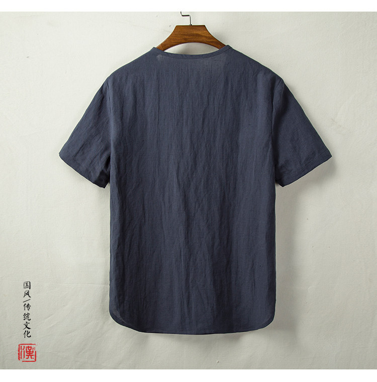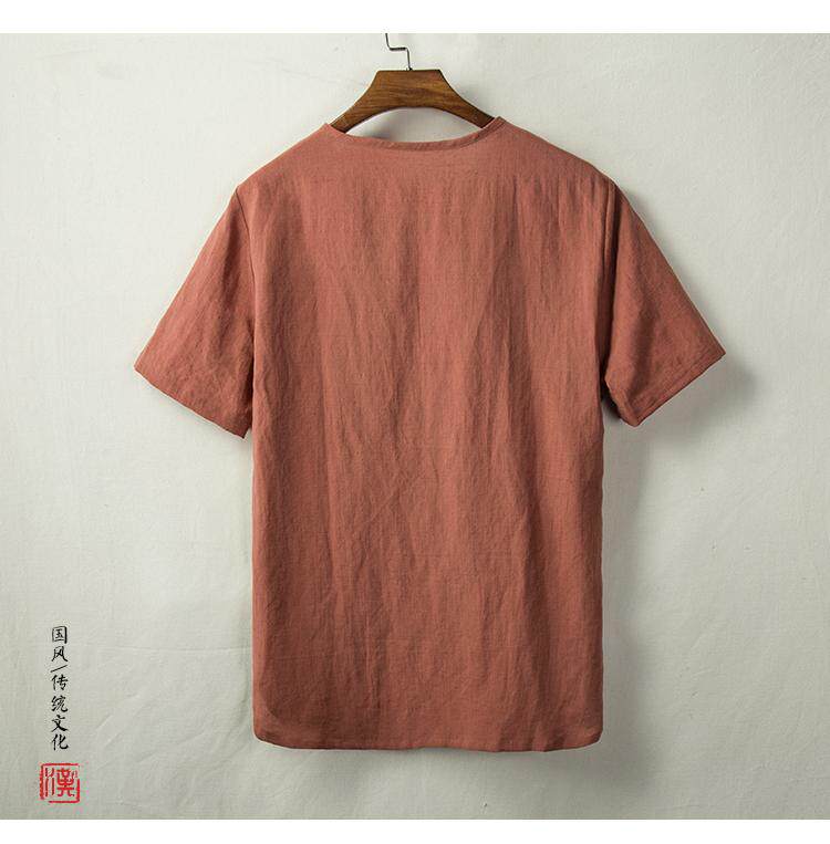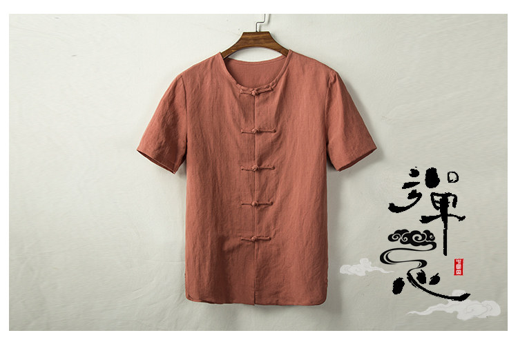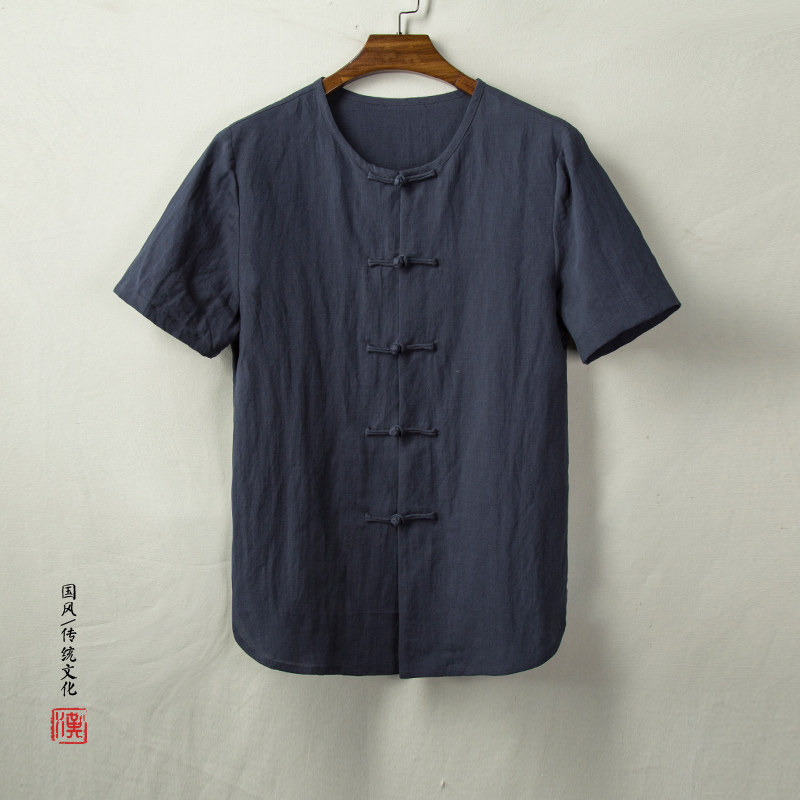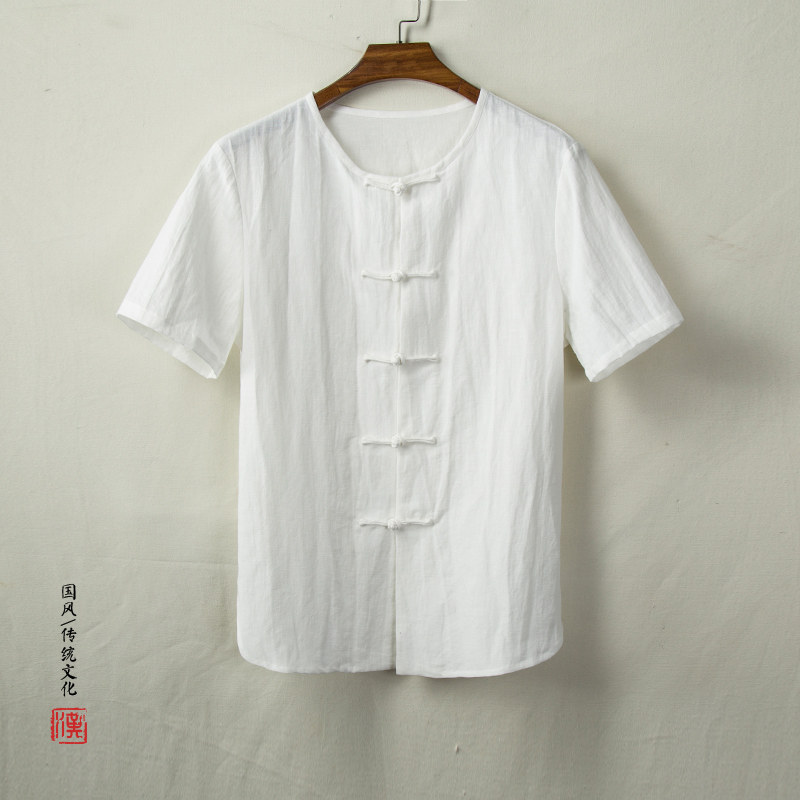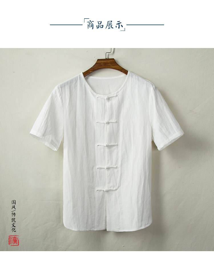 Тонкая ретро рубашка, из хлопка и льна, китайский стиль