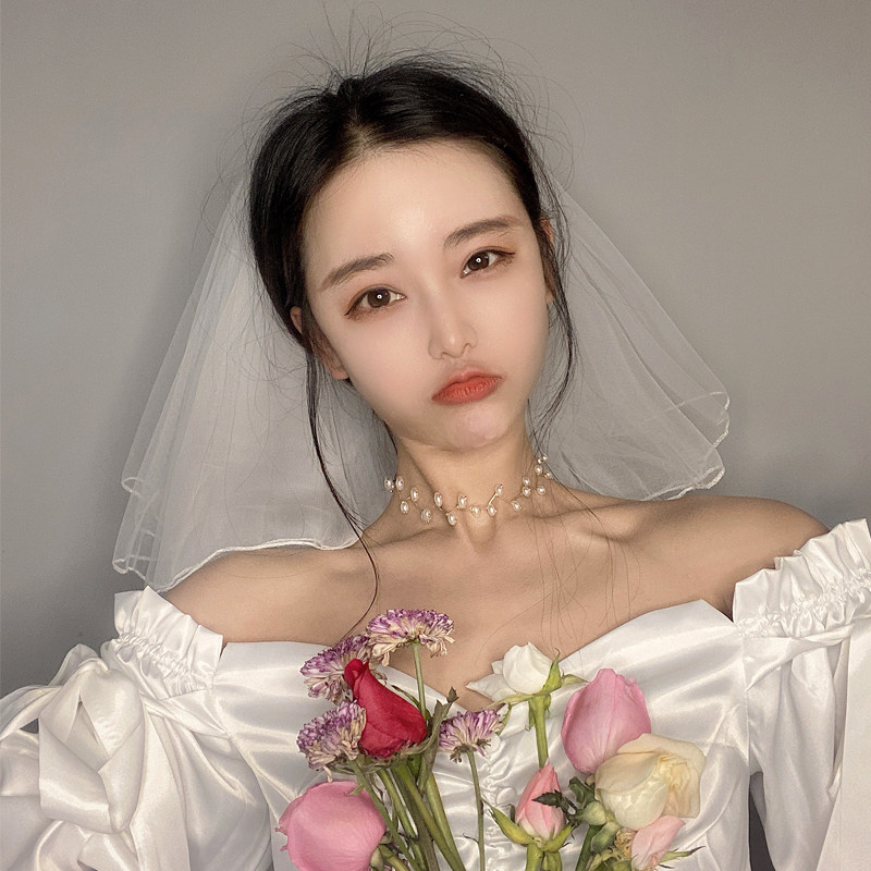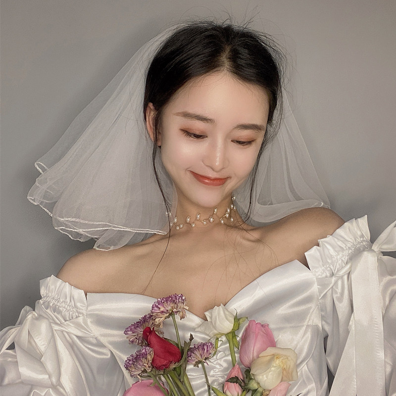 Фата и головной убор, супер-волшебный реквизит для фото знаменитостей в Интернете, невеста, женское свадебное платье, ретро-регистрация, сертификат, небольшое короткое стильное предложение.