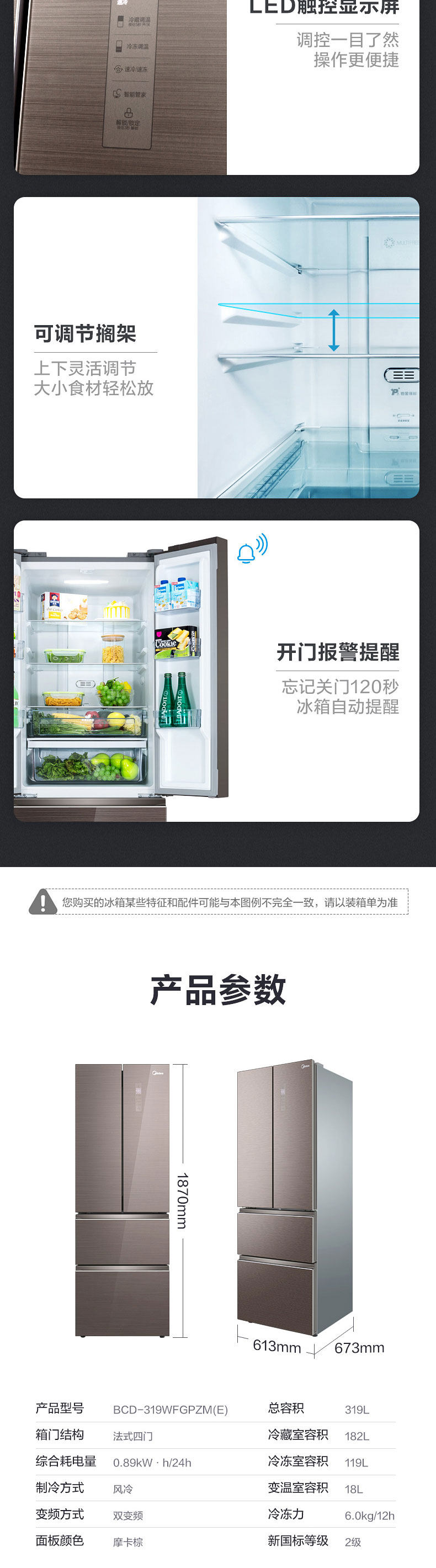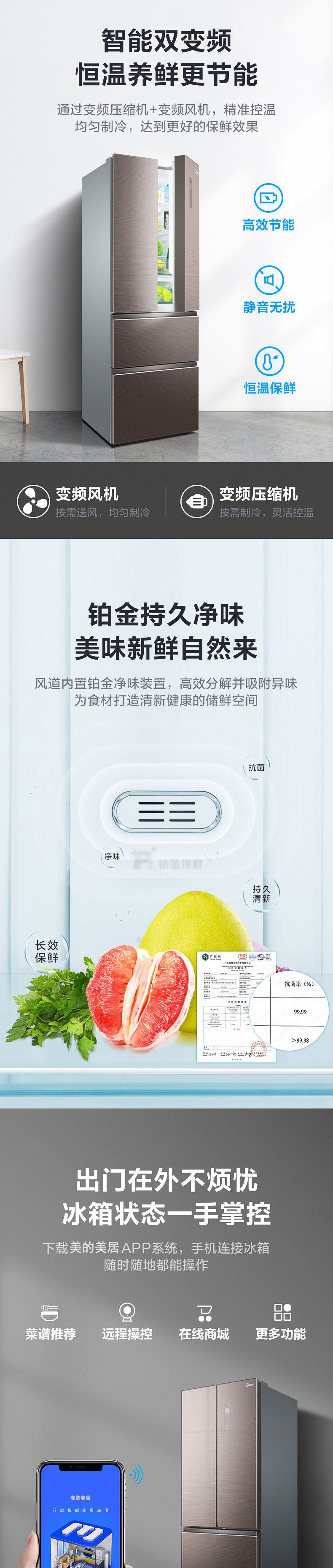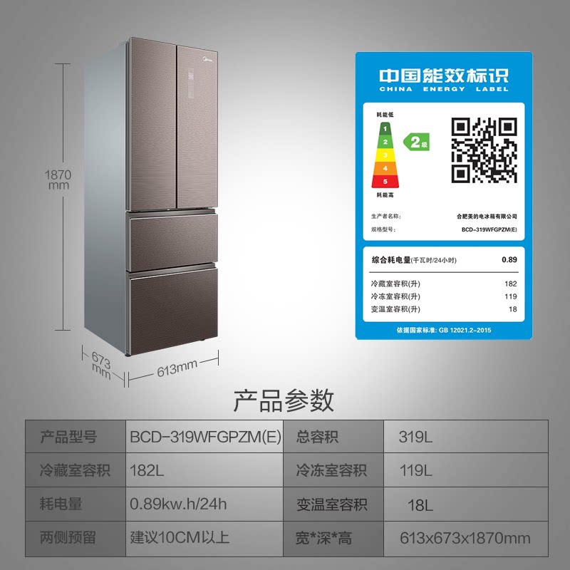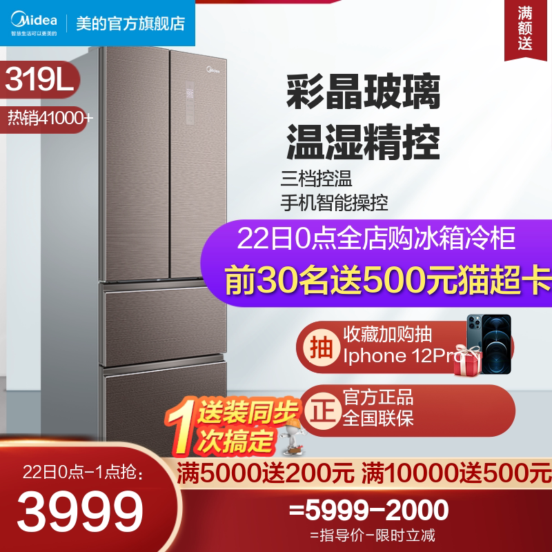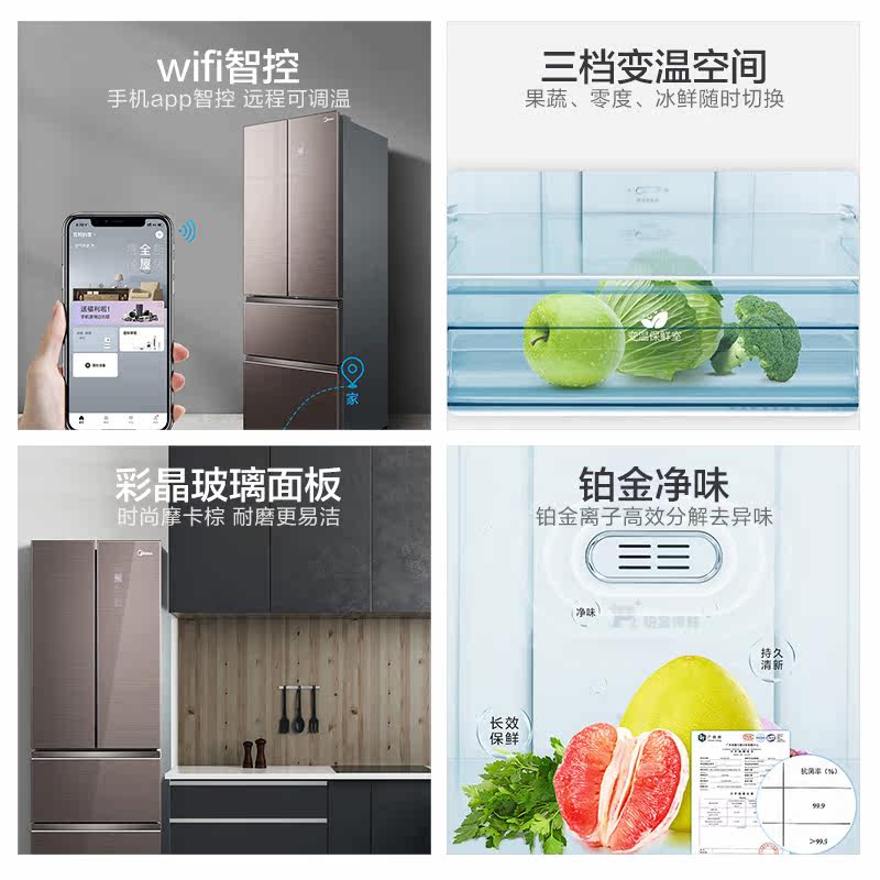 Midea 319wfgpzm (e) Домашний холодильник с четырьмя туалетными французскими многоуровневыми энергетическими инвертора