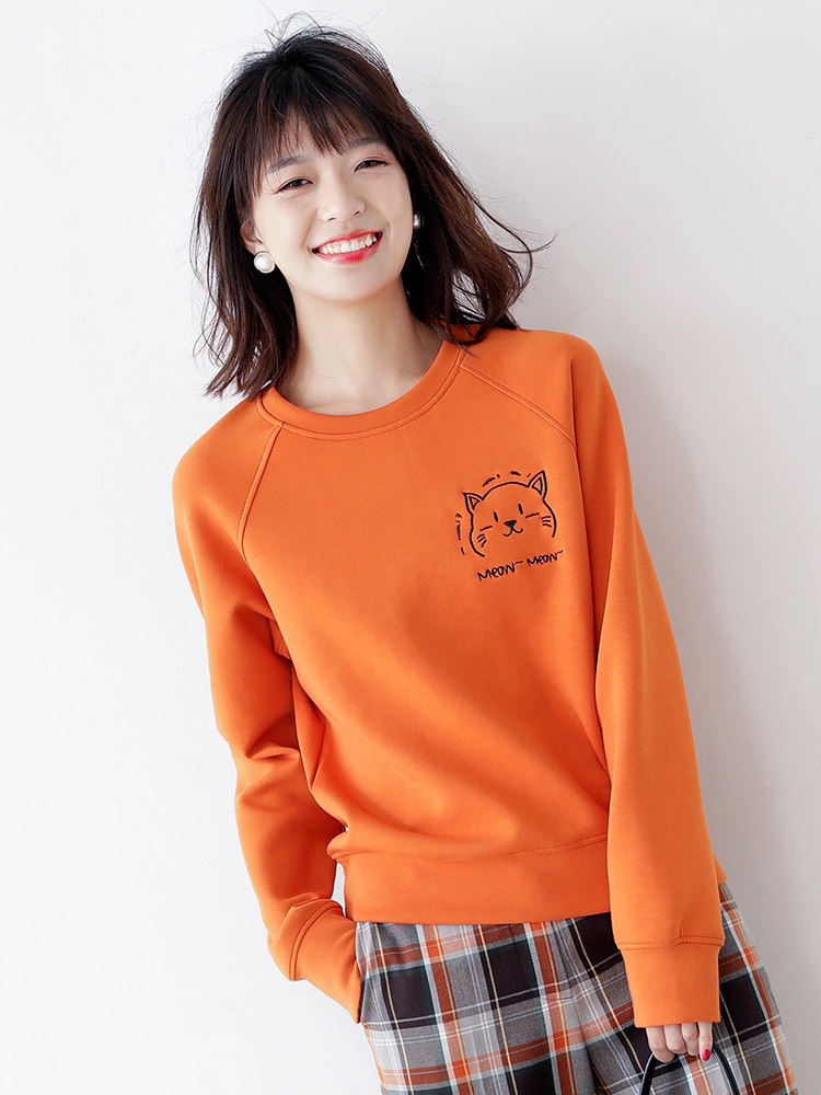 Оранжевая осенняя толстовка с круглым воротником, лонгслив, коллекция 2022, подходит для подростков, с вышивкой, оверсайз, в западном стиле