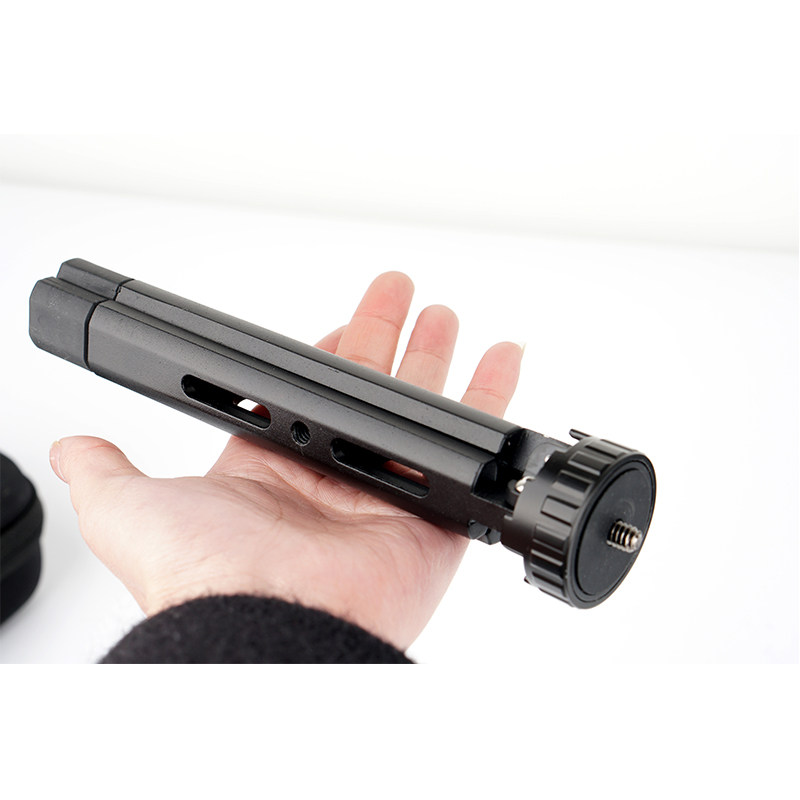 Этот штатив изготовлен из всего металла и имеет регулируемые передачи