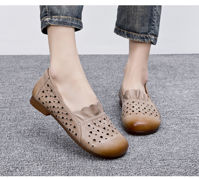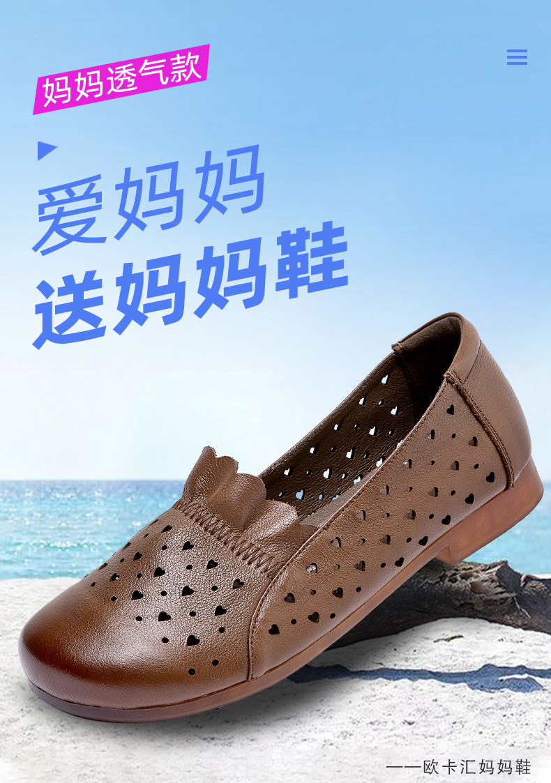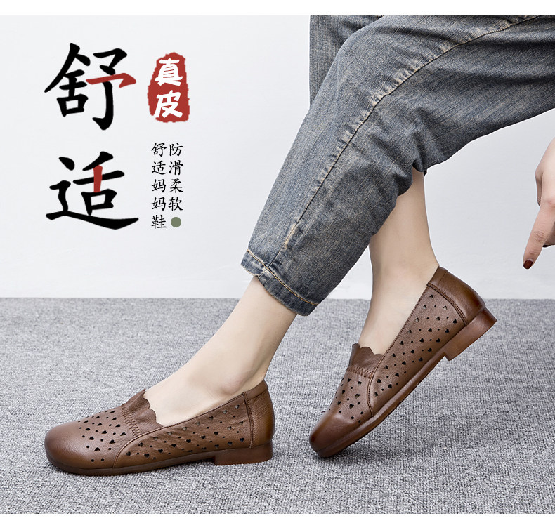 Летние комфортные нескользящие сандалии для матери, мягкая подошва, для среднего возраста, из натуральной кожи