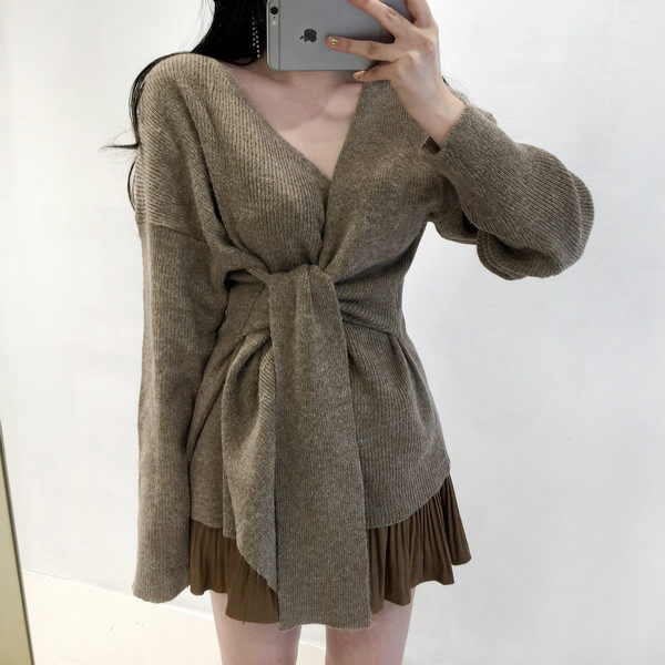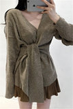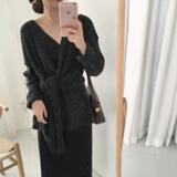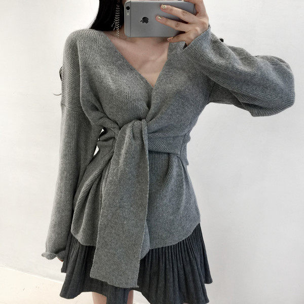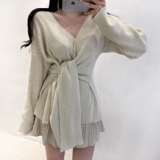 Корсет, сексуальный ремень, модный трикотажный свитер, 2020, V-образный вырез, городской стиль, в западном стиле