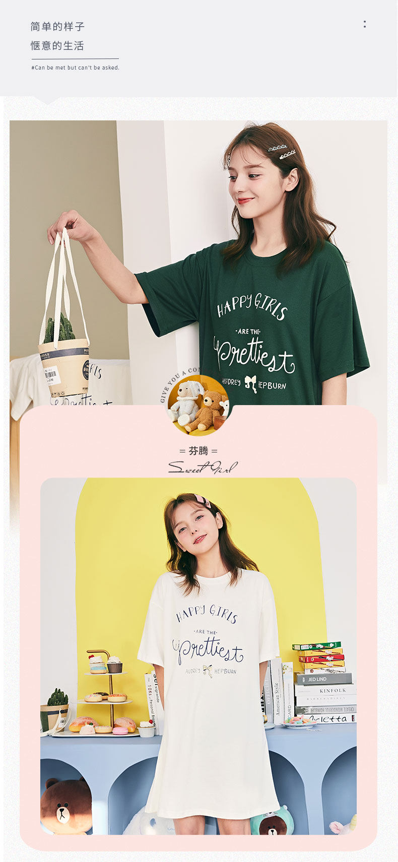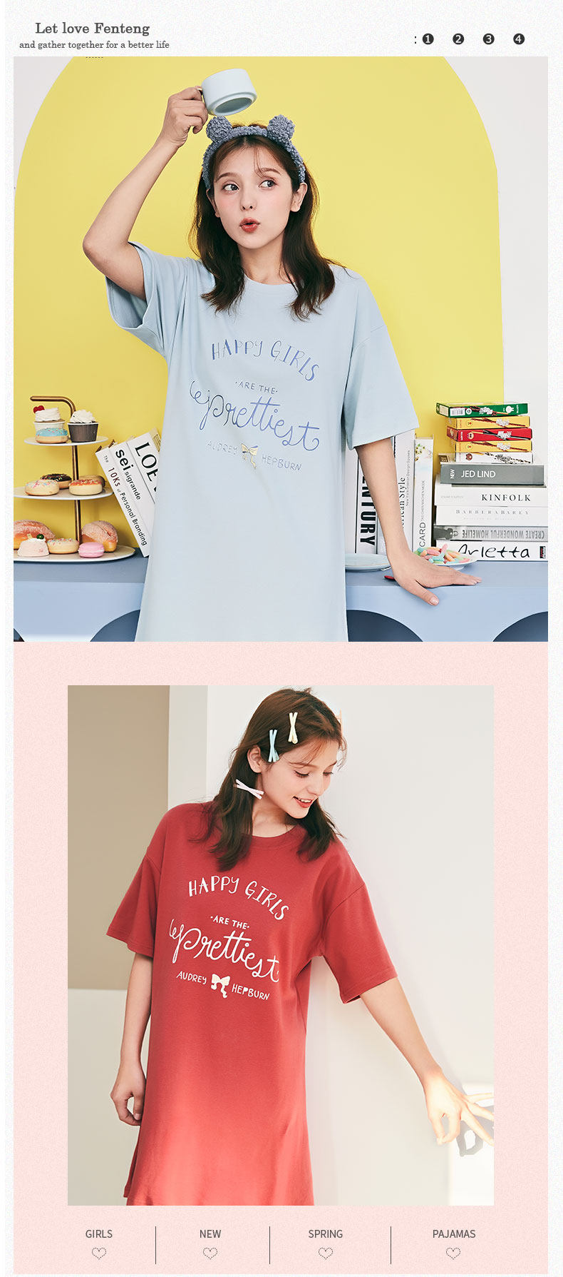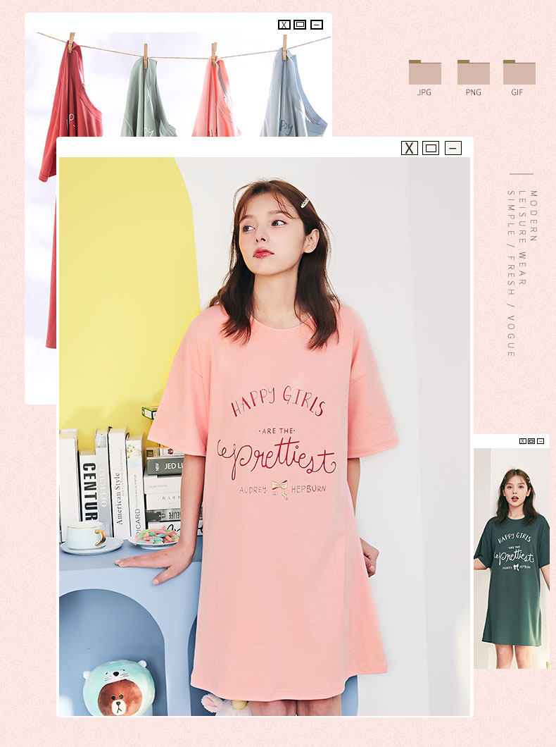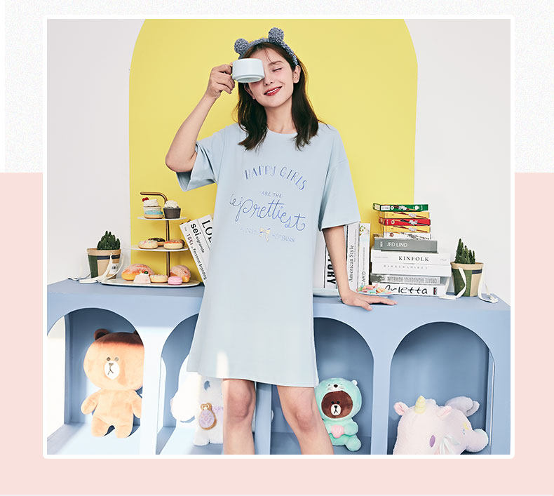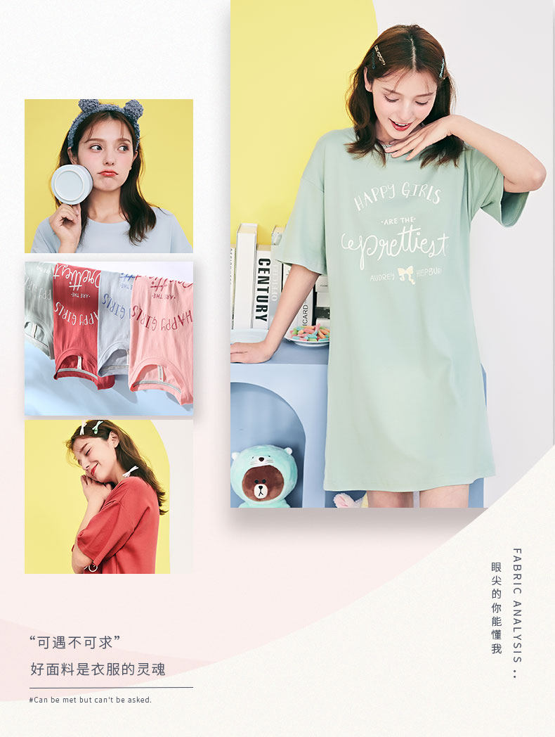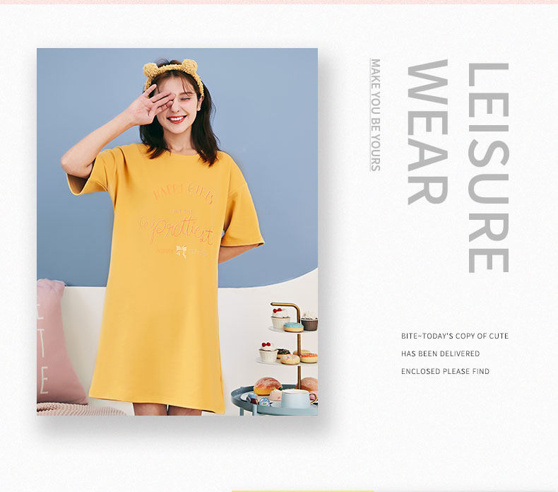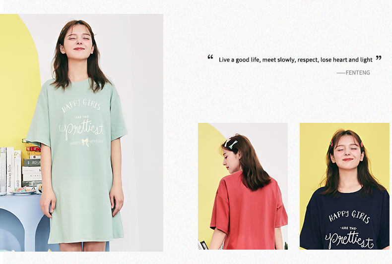 芬腾 Пижама, трикотажная хлопковая тонкая милая юбка с круглым воротником, мини-юбка