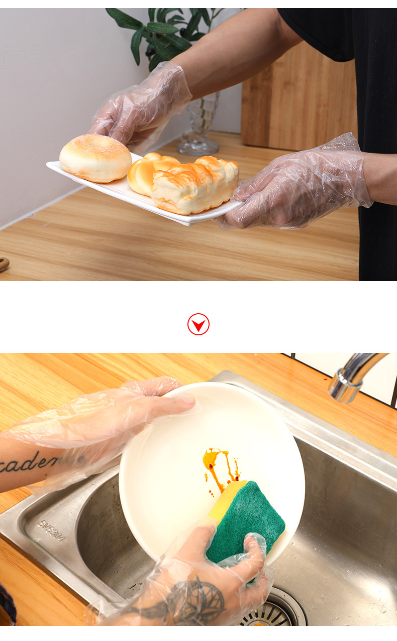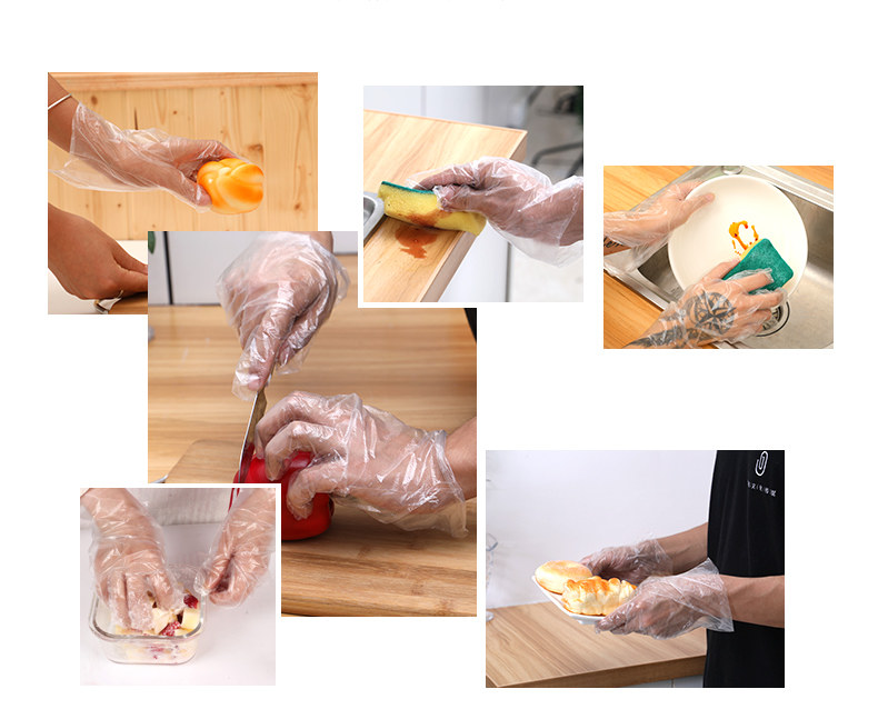 Одноразовые перчатки для красоты сгущенной едой. Прозрачная пластиковая пленка кухня Pe Glove экстракция