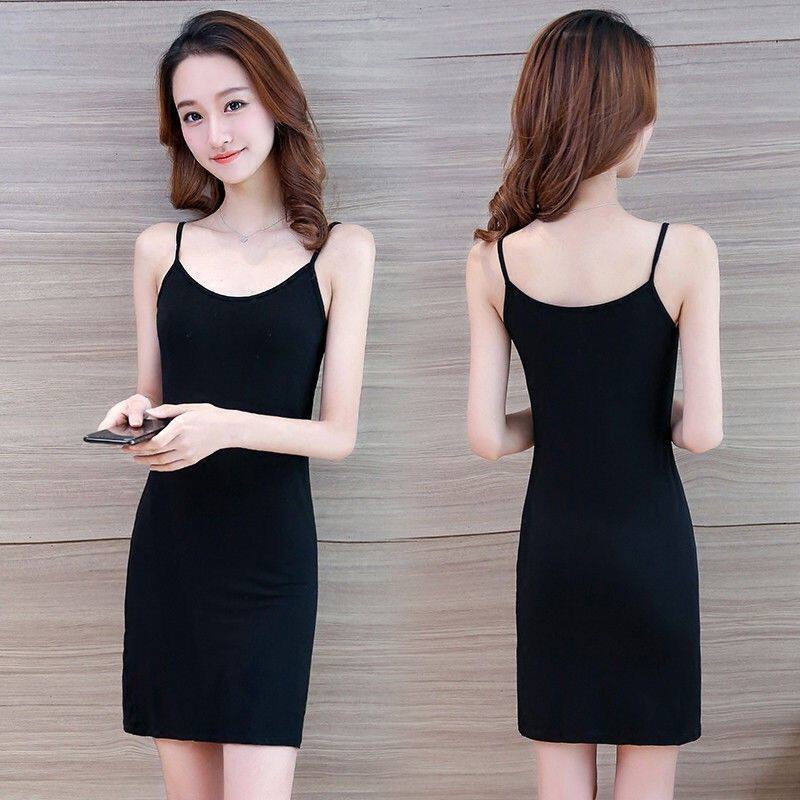 Базовое сексуальное платье-комбинация, топ с чашечками, майка топ, длинное белье для повседневной носки, пижама, средней длины, городской стиль, эффект подтяжки
