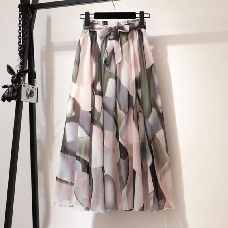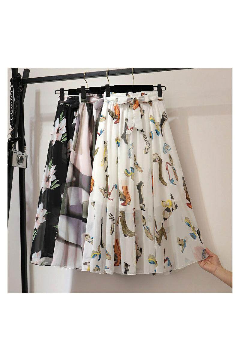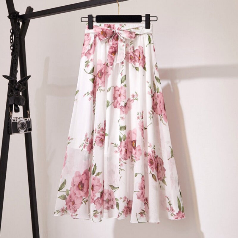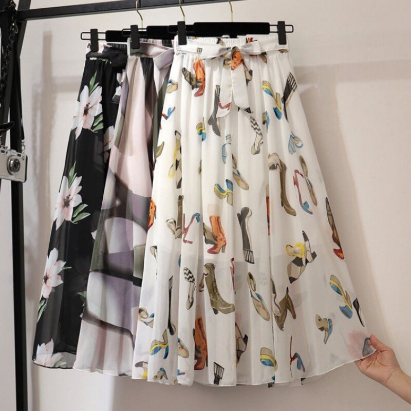 Шифоновая длинная длинная юбка, пляжное платье, шифоновая с принтом, средней длины, цветочный принт, стиль бохо