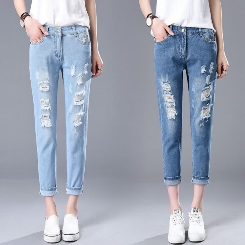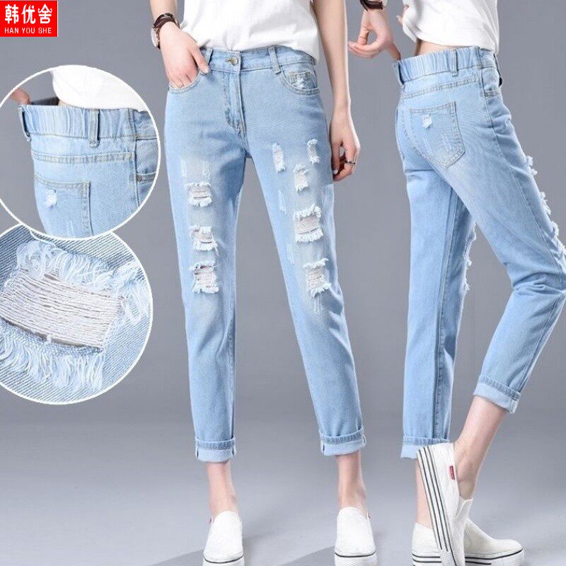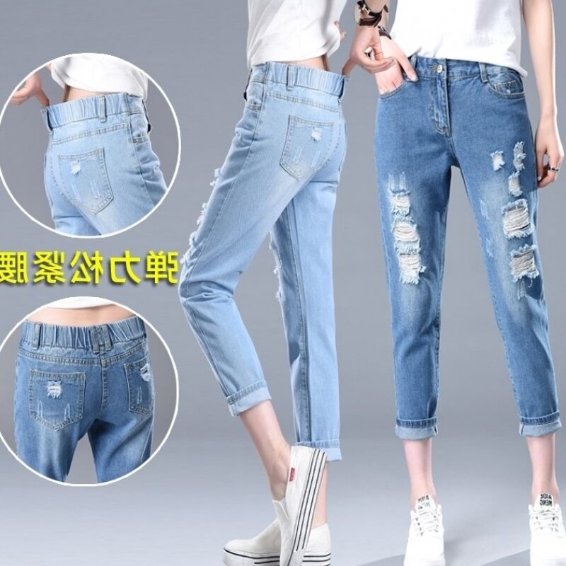 Летние джинсы, штаны, 2020, в корейском стиле, эластичная талия, оверсайз