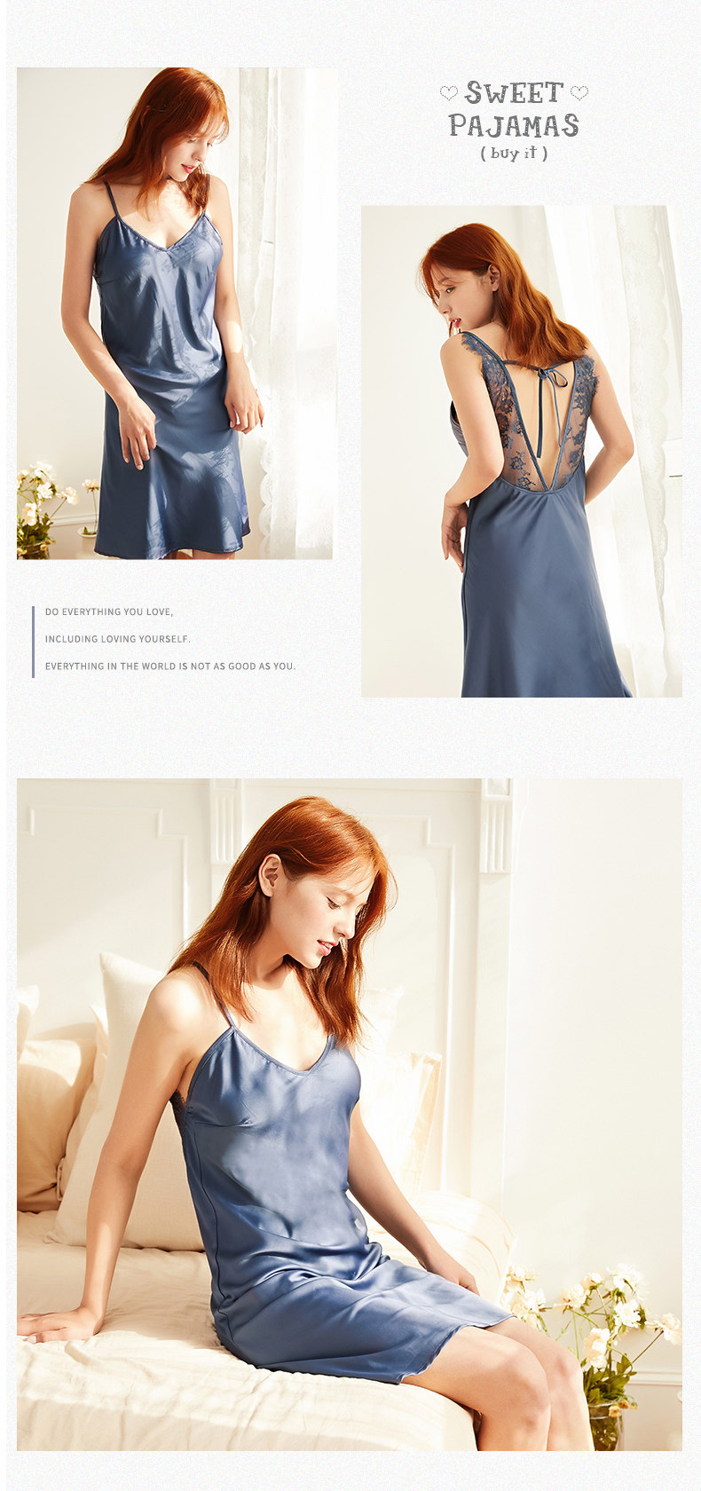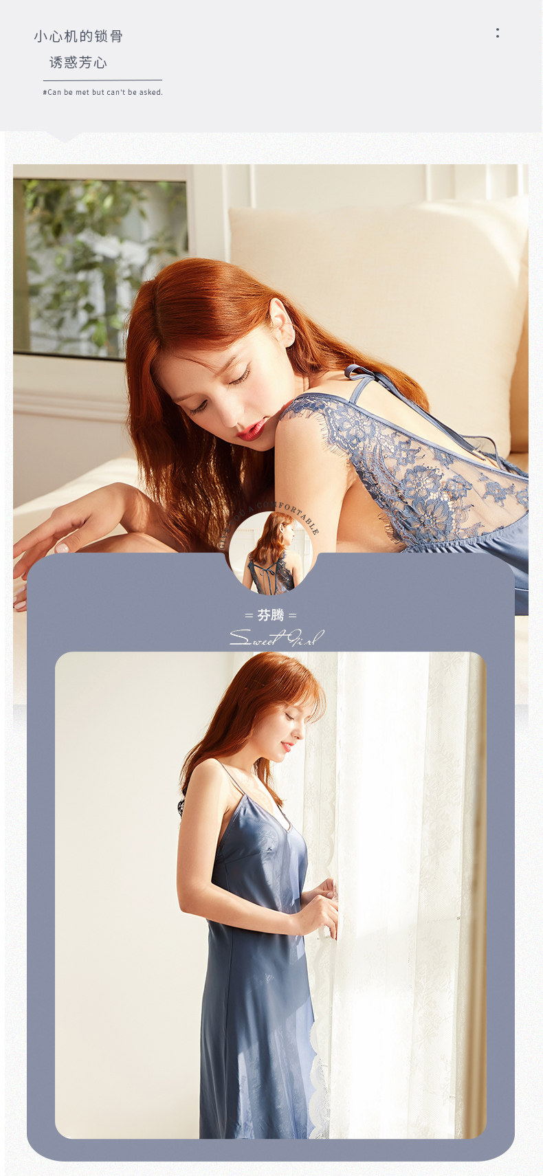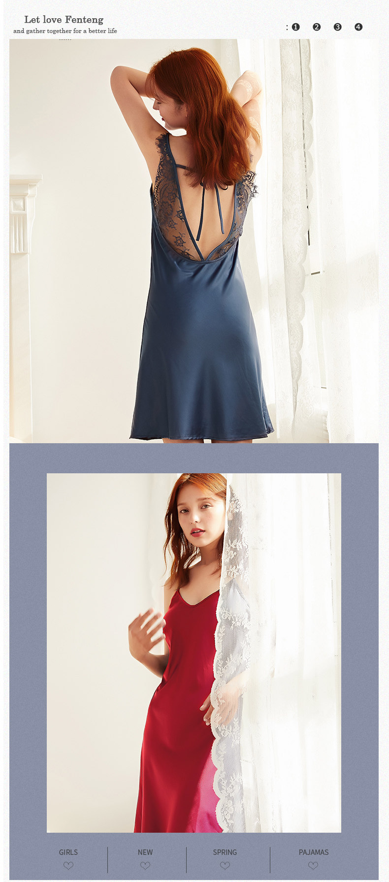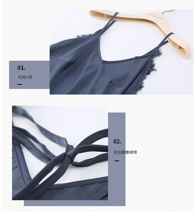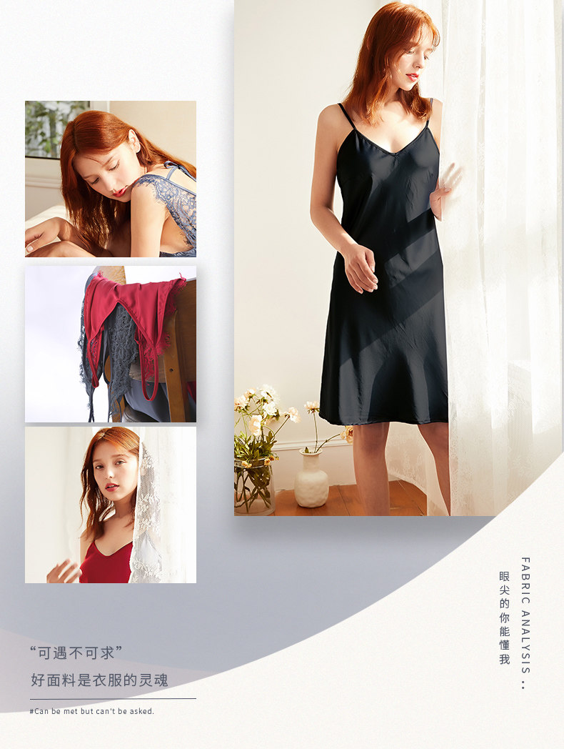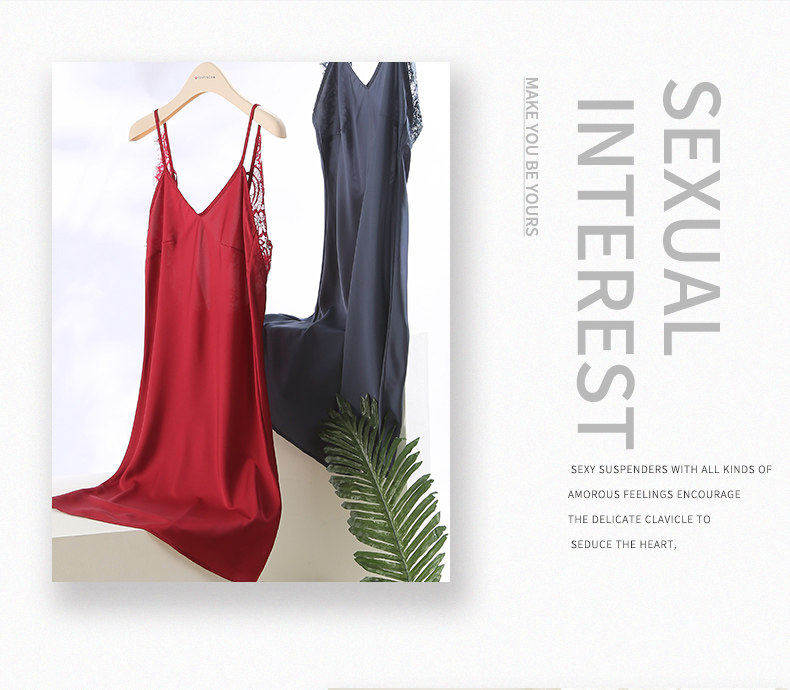 芬腾 Сексуальная летняя шелковая пижама, тонкое кружевное платье, эффект подтяжки