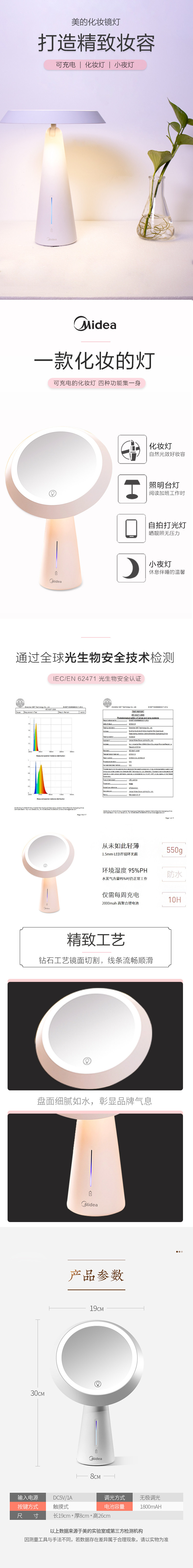 Умное светодиодное легкое зеркало с подсветкой, настольный заполняющий свет для спальни